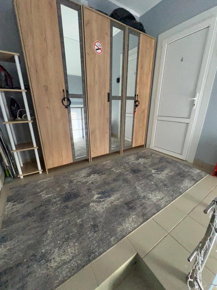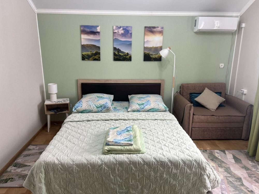 Данная квартира находится на 2 этаже. В квартире 1 двуспальная кровать + 1 раскладное кресло (900×1900). В квартире для комфортного проживания находится: кондиционер, телевизор, Wi-fi, холодильник, электрический чайник, стиральная машина, чистое постельное белье, пледы, одеяла, полотенца и средства гигиены, фен, микроволновая печь, электрическая индукционная плита, утюг и гладильная доска (по запросу). Есть посуда, столовые приборы а также важные мелочи как салфетки, штопор, открывалка, зубочистки и др. Мини бар за доп. плату (вода в бутылках и напитки). Чай сахар, кофе, соль.