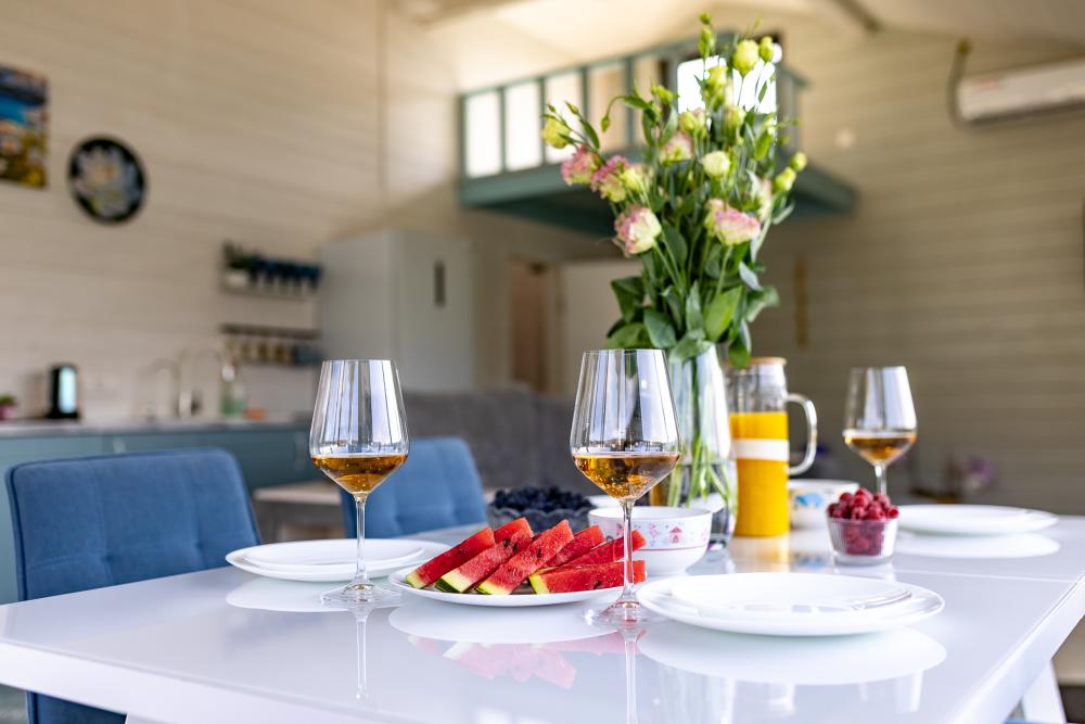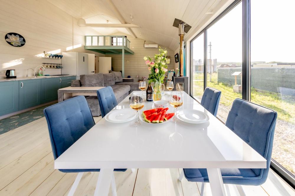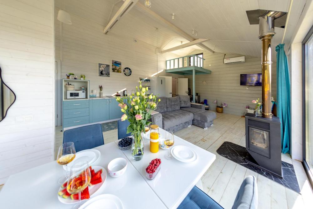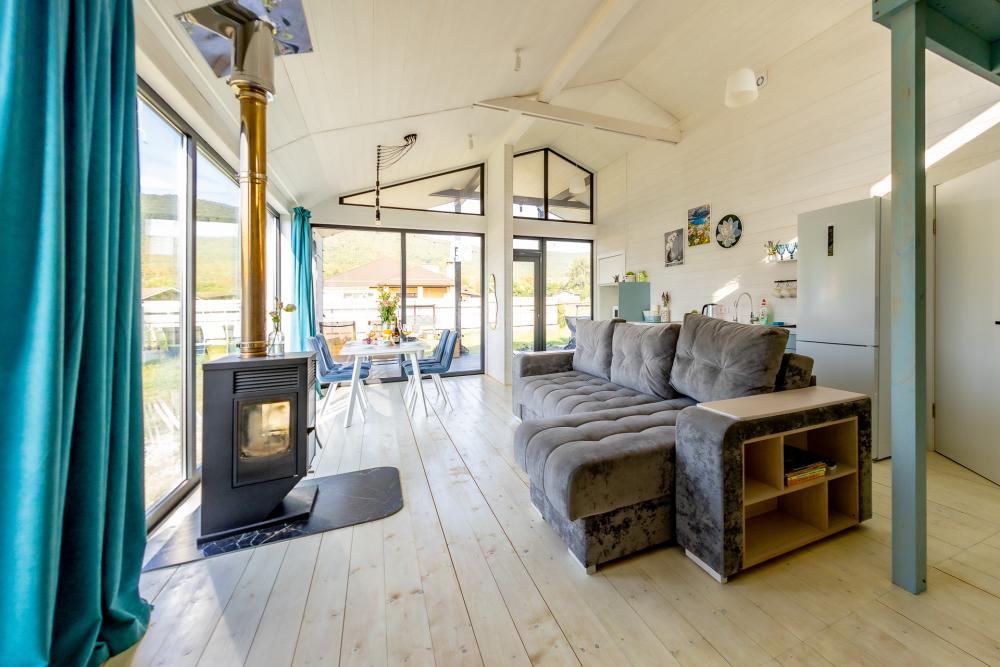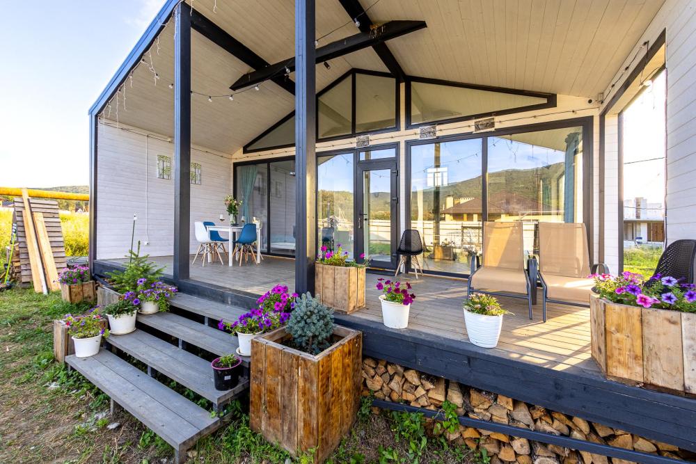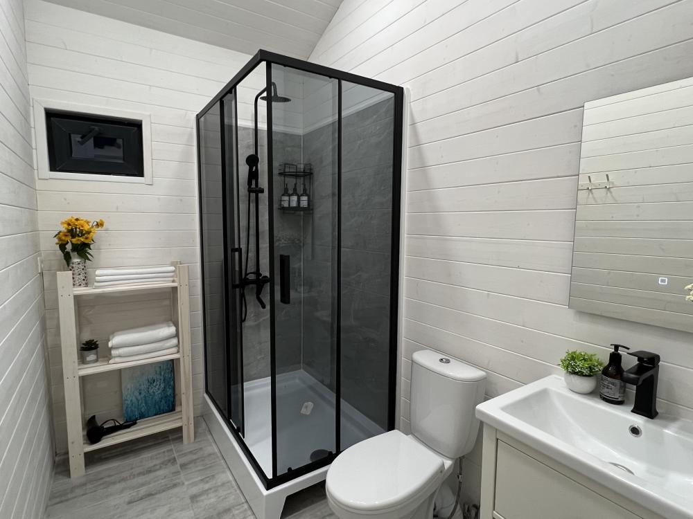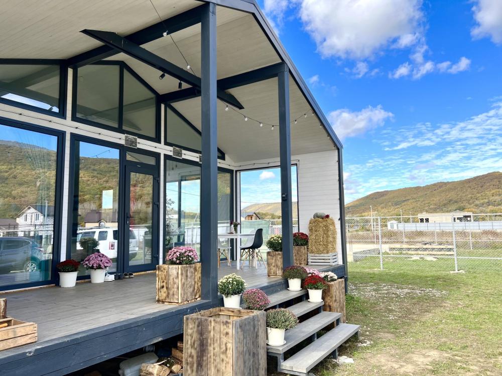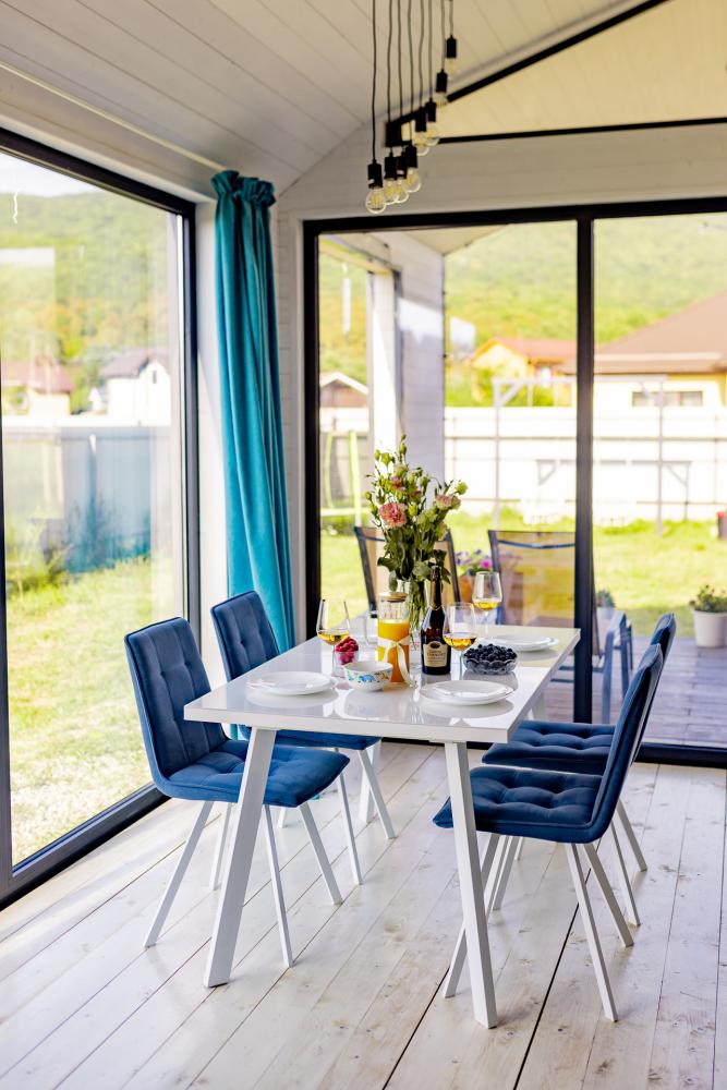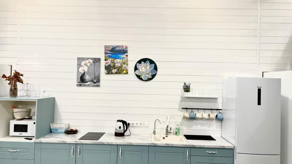 Прекрасный новый дом общей площадью 80 кв.м. для размещения до 7-ми гостей. Дом полон света, с чудесным панорамным остеклением на фантастически красивые горы. В доме две спальни с двухспальными кроватями, большой панорамный 45 м2 зал с камином и удобным диваном, стильная кухня с индукционной плитой, холодильником, и всей необходимой посудой, белоснежное белье, полотенца, множество сценариев освещения, быстрый Wi-fi, в ванной комнате душевая кабина, свежие полотенца, гигиенические средства, фен, стиральная машинка, сушилка для белья. Рядом с домом большая терраса со столиком и стульями, мангальная зона (жаровня, печь для казана), качели, чан на 6 человек, батут. Озеро с птицами и детская площадка в коттеджном поселке.