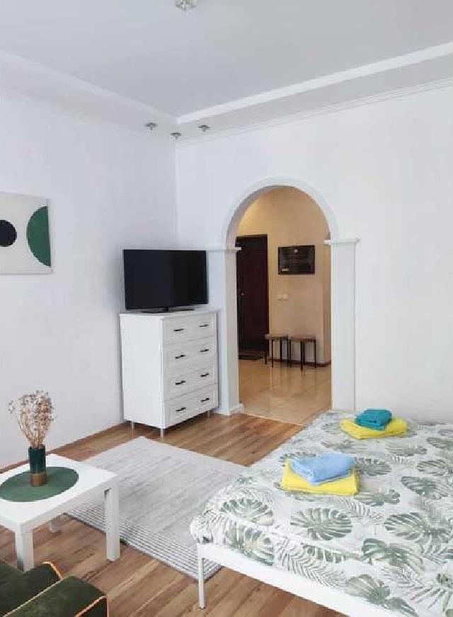 Двухкомнатная квартира площадью 68 м² с уютным ремонтом и всеми необходимыми удобствами: имеется ванна, оборудованная кухня, телевизор, шкаф, стиральная машина, холодильник.