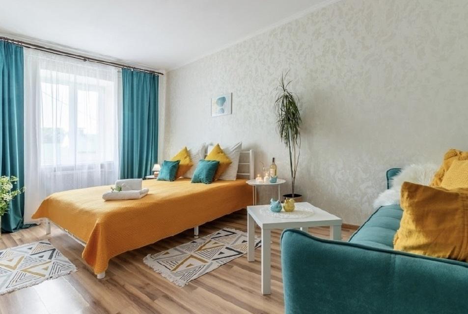 Уютная однокомнатная квартира. В распоряжении гостей двуспальная кровать, раскладной диван, оборудованная кухня и ванная комната.
