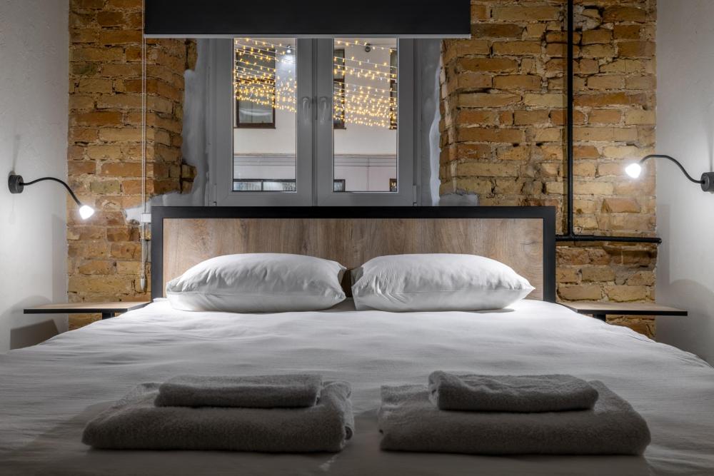 Уютный номер в стиле лофт рассчитан для двоих гостей: одна двуспальная кровать обеспечит комфортный сон, а современный интерьер создаст атмосферу домашнего тепла.