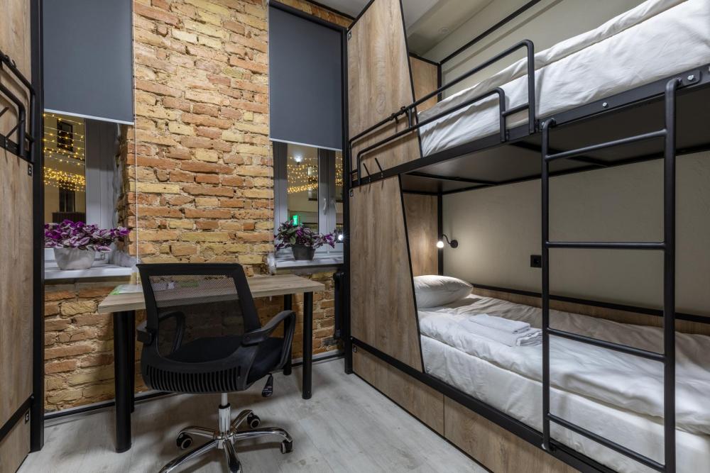 Отдельный номер для четверых гостей, с двумя двухъярусными кроватями подарит максимум уюта и приватности. Современный интерьер и тёплая атмосфера позволяют чувствовать себя как дома.