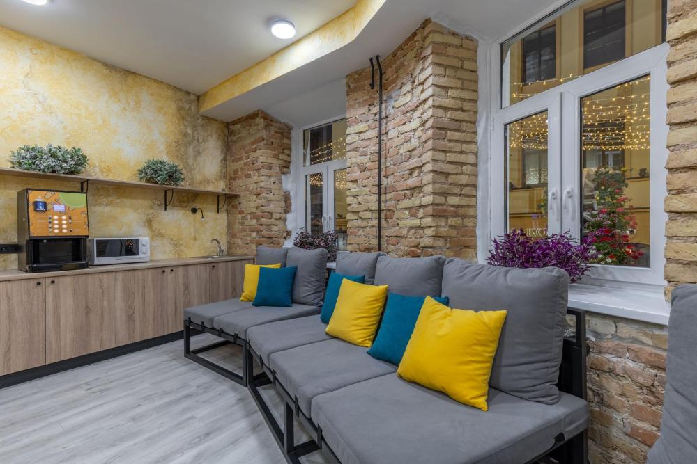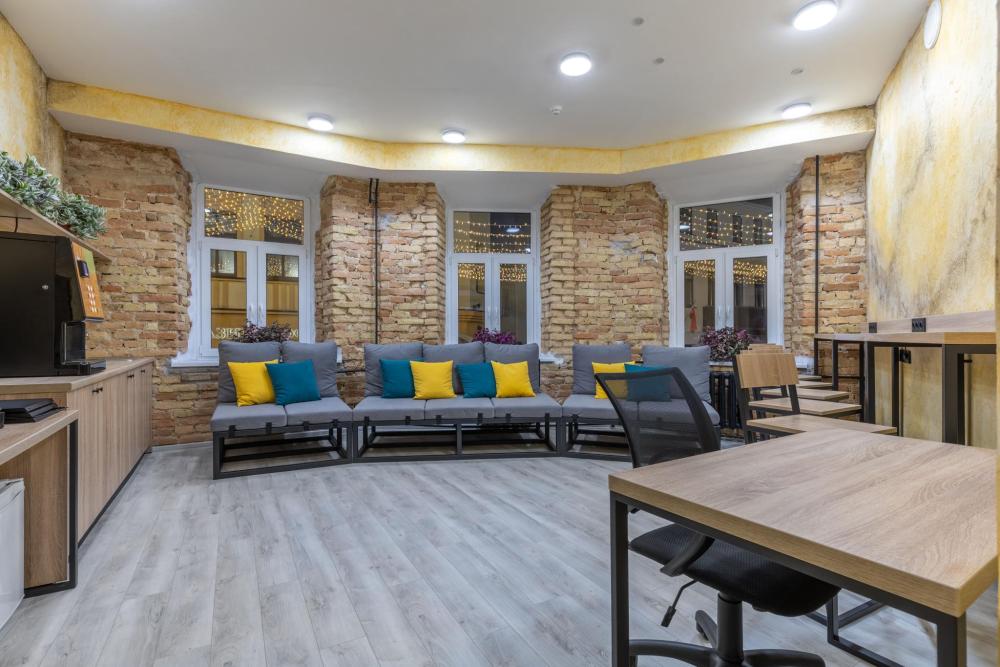 Просторные общие номера в стиле лофт — на 10 мест, с удобными двухъярусными кроватями. Комнаты оснащены новой мебелью, отдельными душевыми и всеми удобствами.