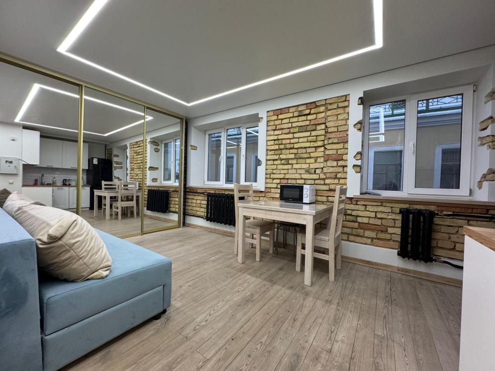 Просторная студия с высокими потолками. Широкие стены 100-летнего дома помогают сохранять прохладу даже в самые жаркие дни, обеспечивая комфортное пребывание в любое время года. Уютный зелёный двор старого города дарит тишину и спокойствие, создавая приятную атмосферу...