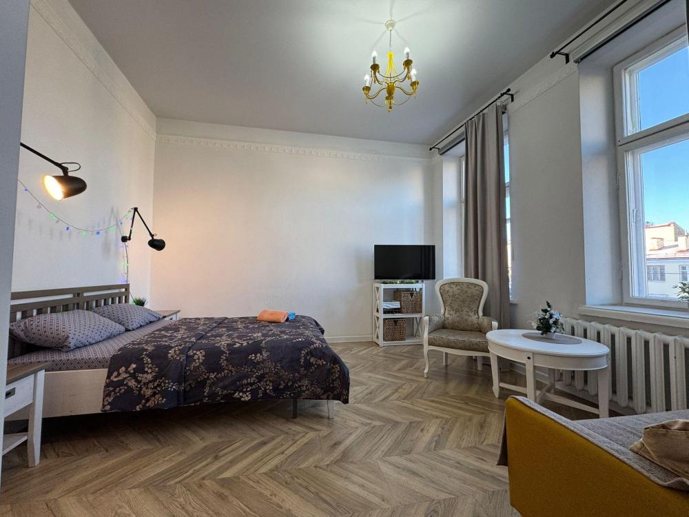 Квартира в историческом центре города на пешеходной улице, подходит для размещения семей. В квартире отдельная спальня с двуспальной кроватью и двуспальным диваном. Возможно размещение 4 человек. В квартире есть все необходимое: кофе, чай, сахар, посуда, фен, утюг,...