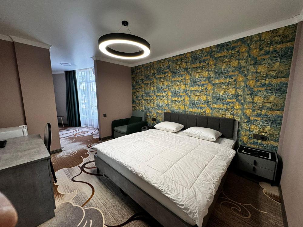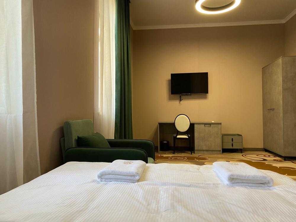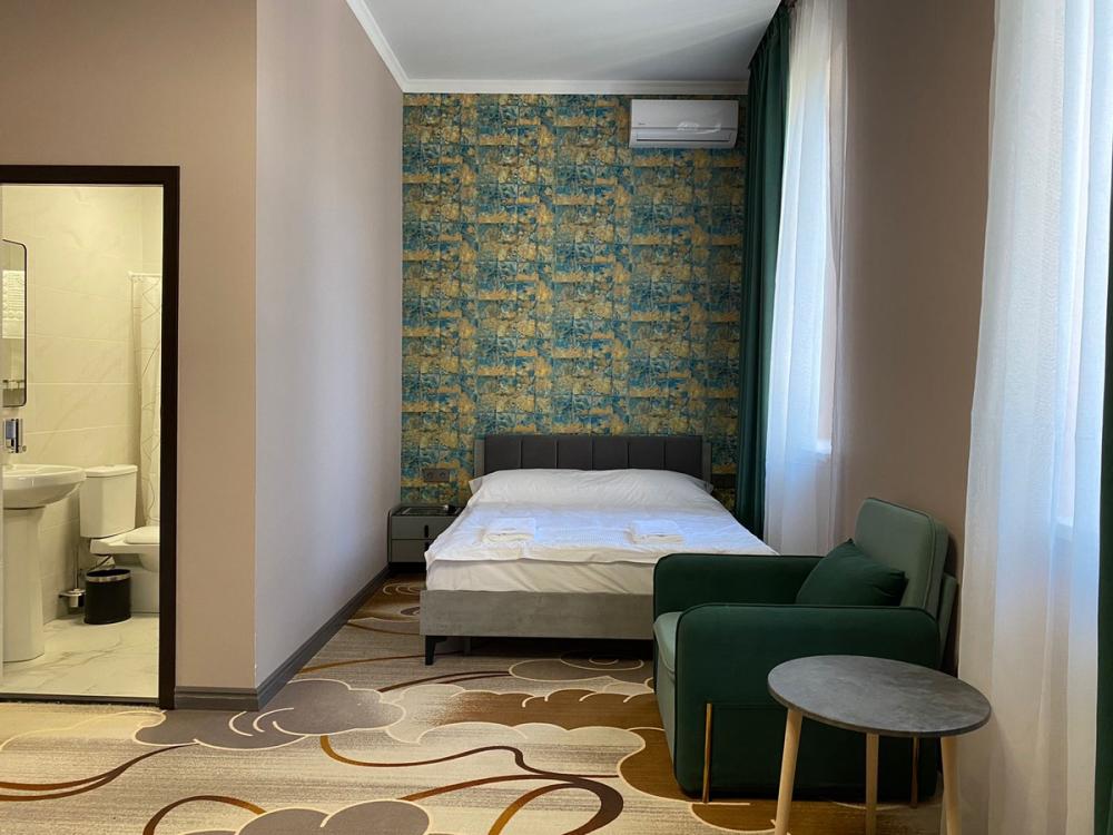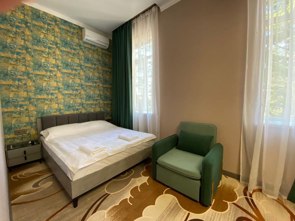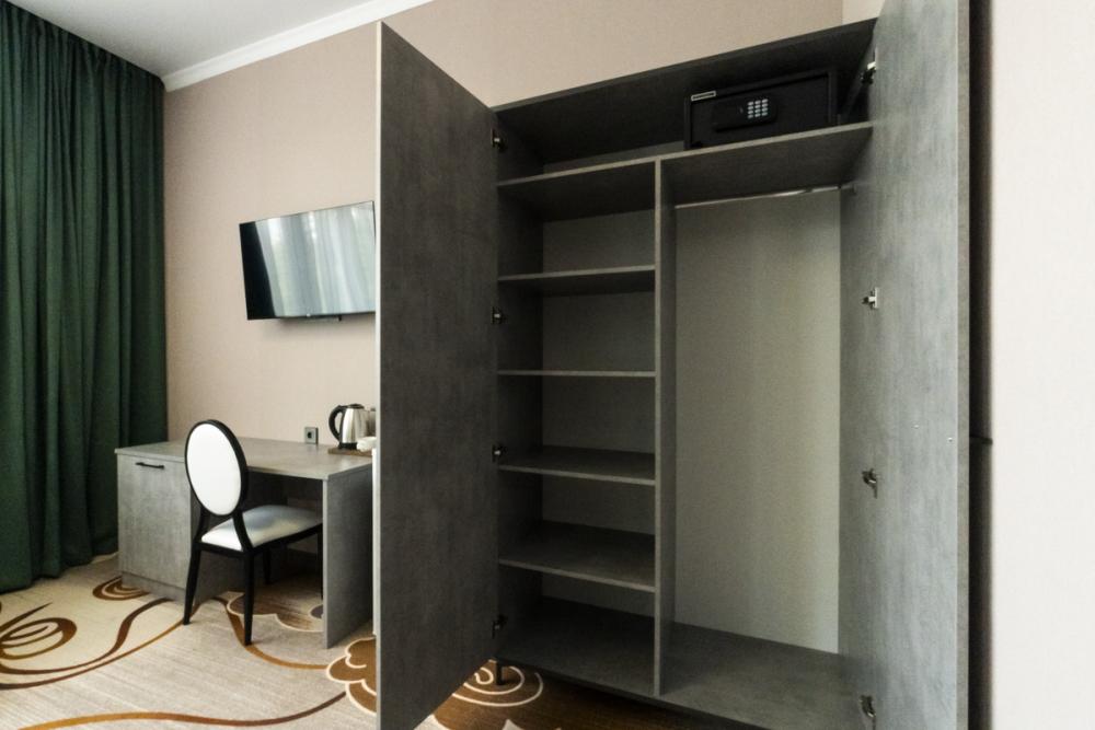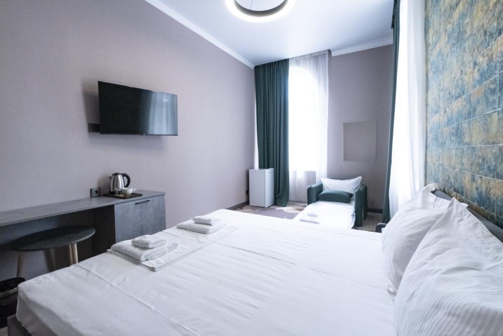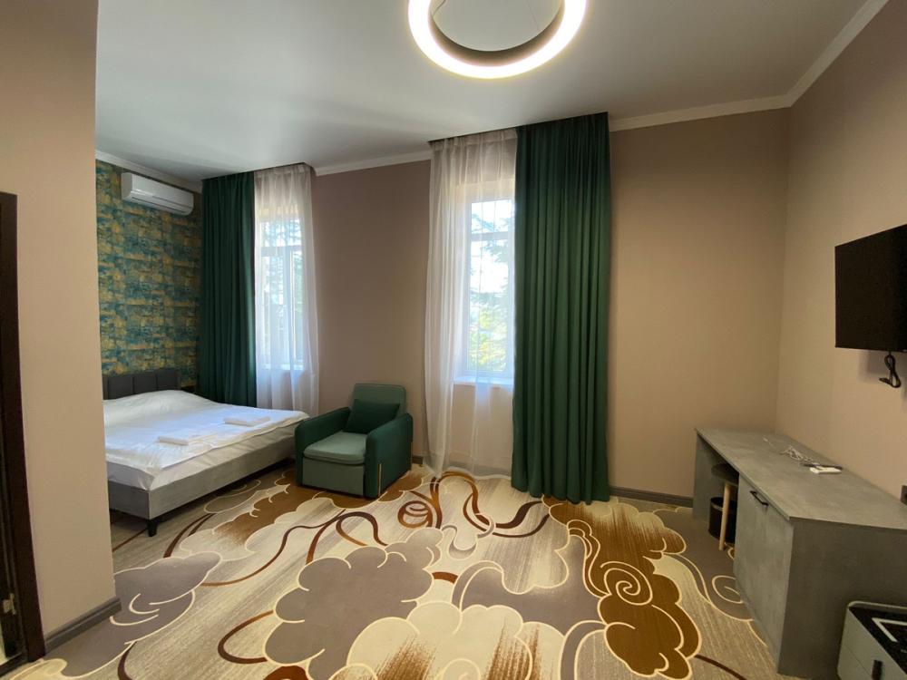Номер полулюкс. В распоряжении гостей удобная мебель, кондиционер, телевизор прикроватные тумбы, чайник и собственная ванная комната. Дополнительные места: раскладное кресло и еврораскладушка.