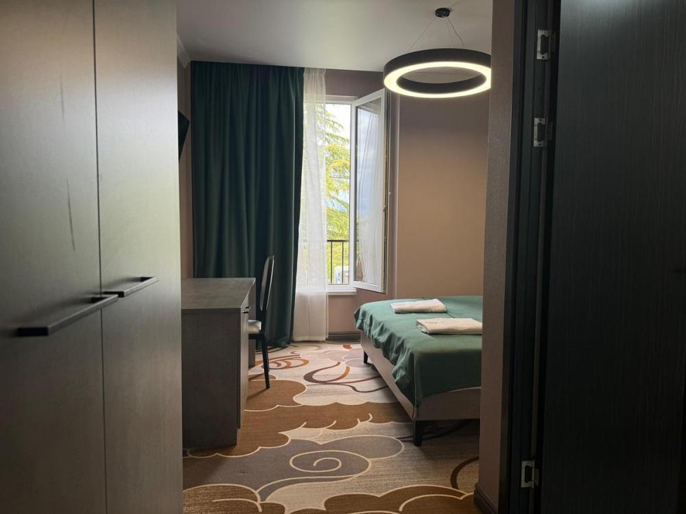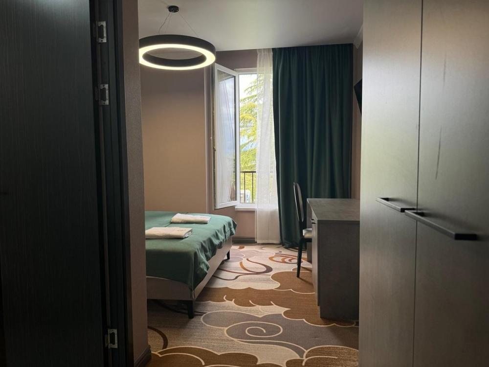 Компактный стандартный номер. В распоряжении гостей удобная мебель, кондиционер, телевизор прикроватные тумбы, чайник и собственная ванная комната.