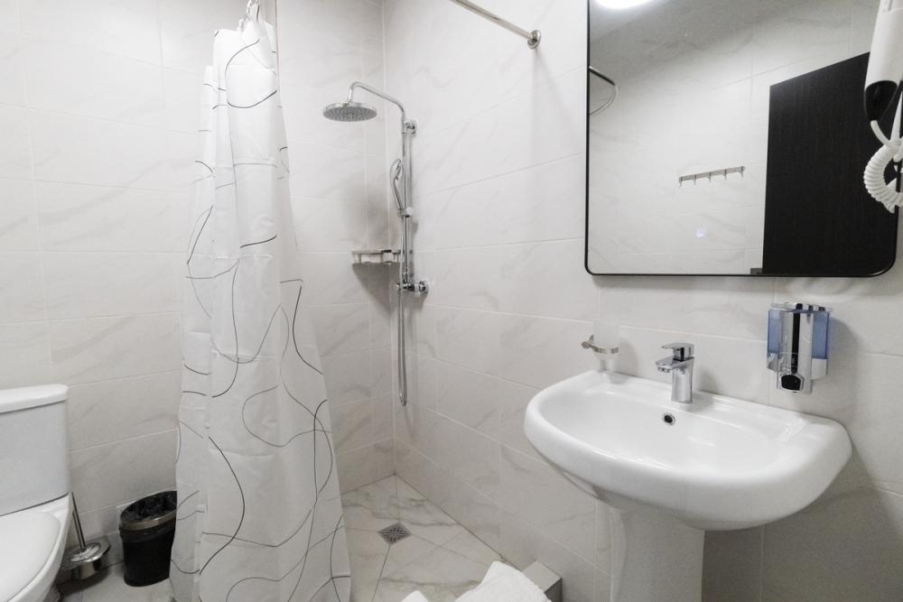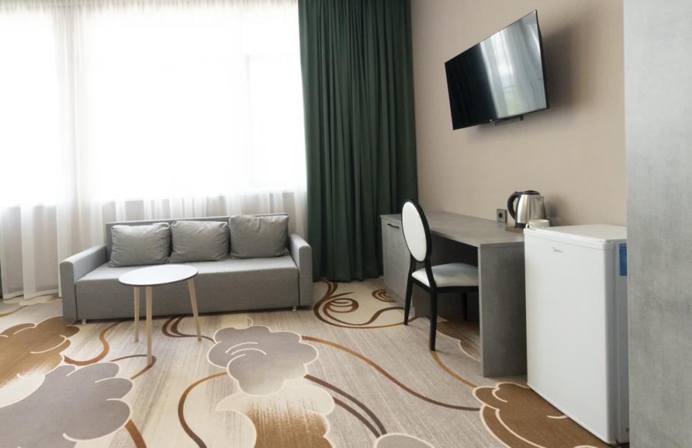 Cтандартный номер. В распоряжении гостей удобная мебель, кондиционер, телевизор прикроватные тумбы, чайник и собственная ванная комната.