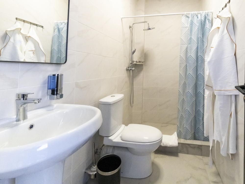 В распоряжении гостей удобная мебель, кондиционер, телевизор прикроватные тумбы, чайник и собственная ванная комната.