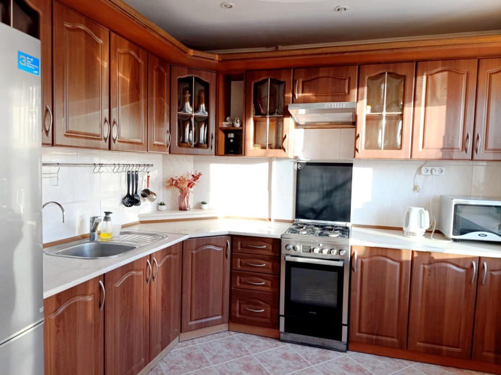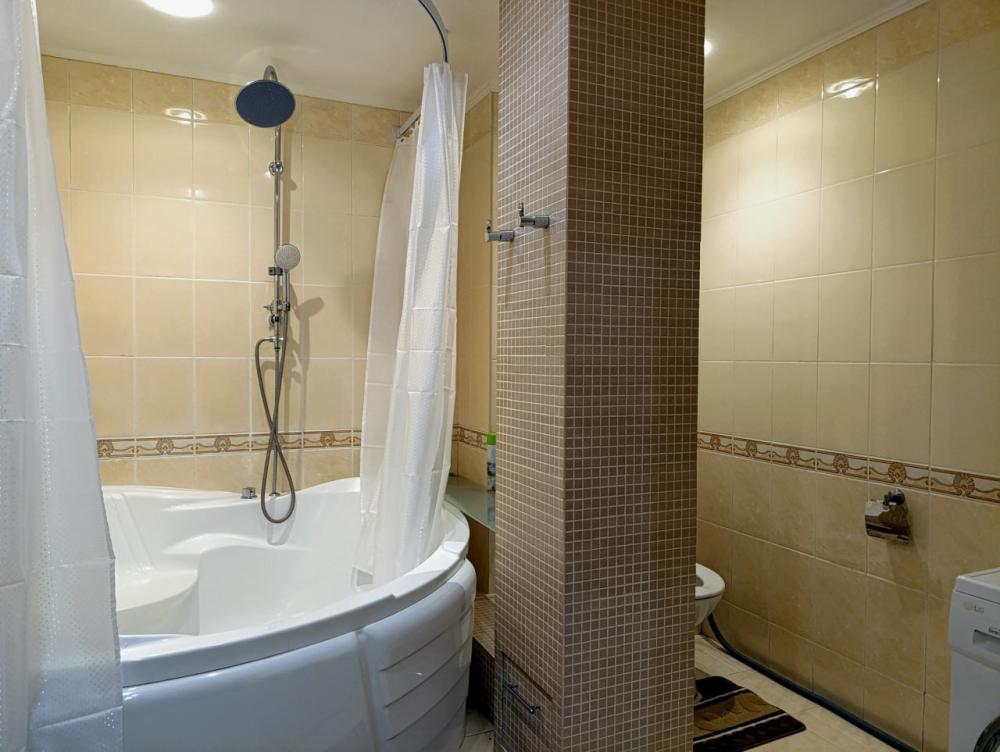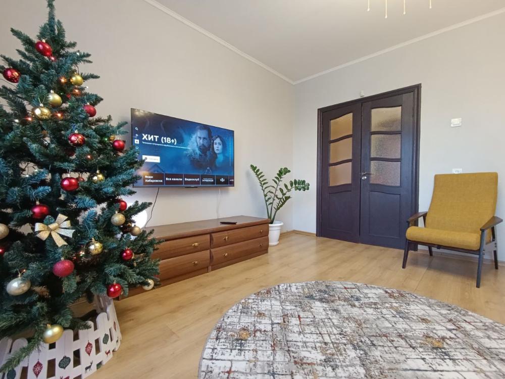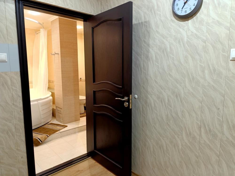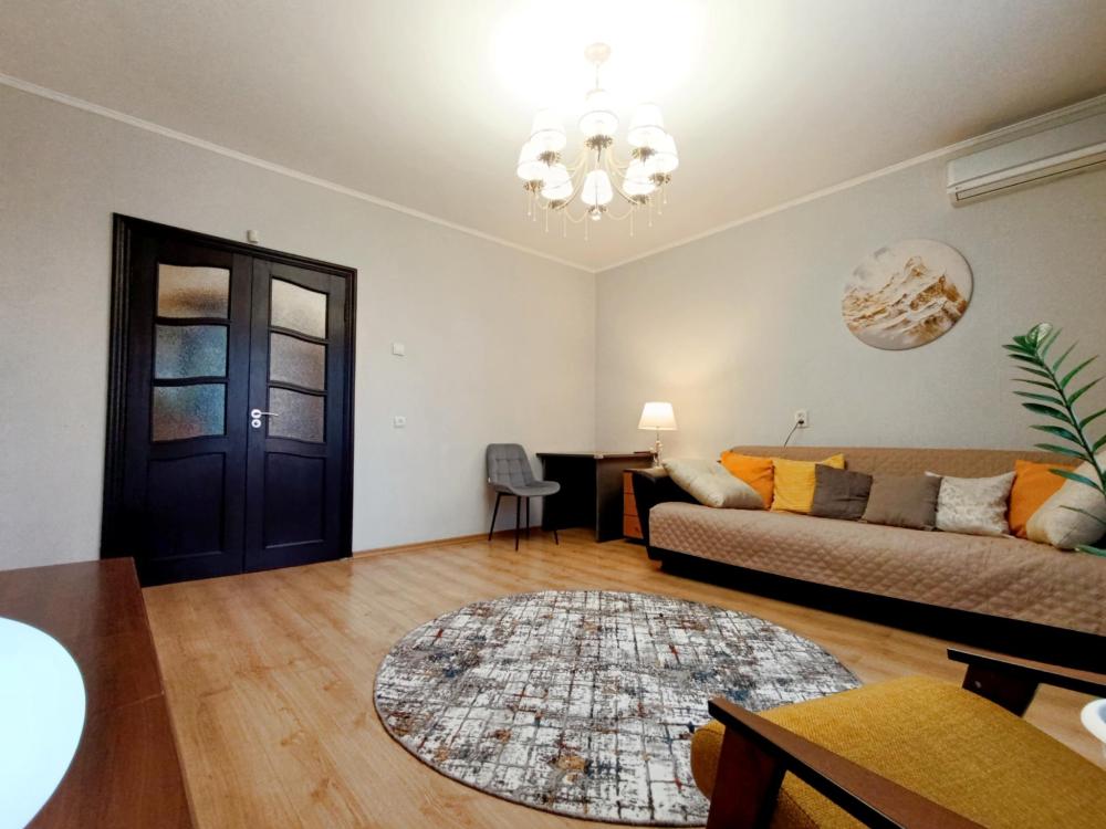 В просторной квартире 68 кв.м вам будет комфортно — она практически трехкомнатная. Две раздельные спальни и кухня-гостиная 25 кв.м, которая также отделена дверью. Во всех зонах организованы спальные места.