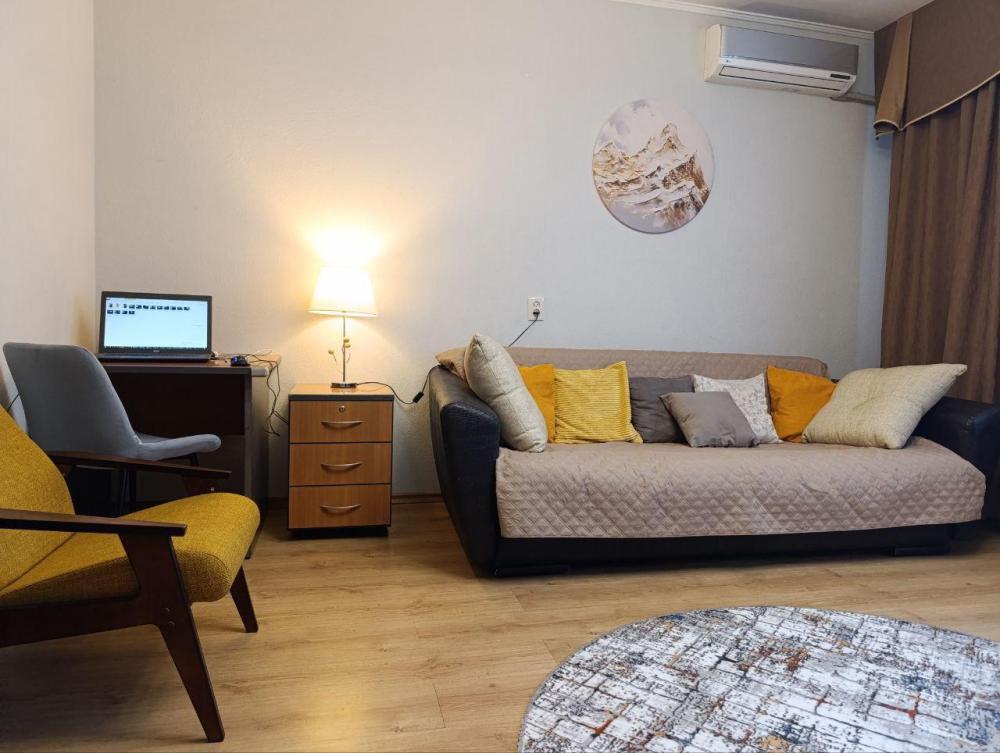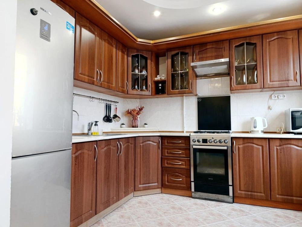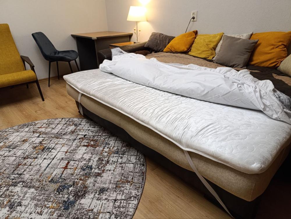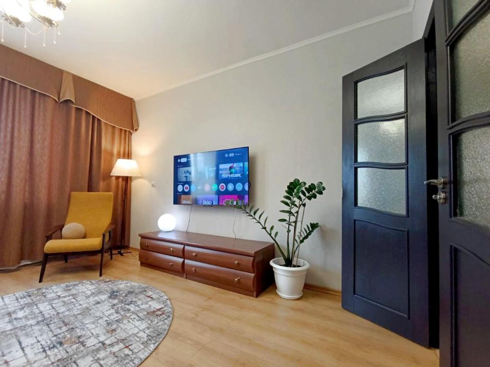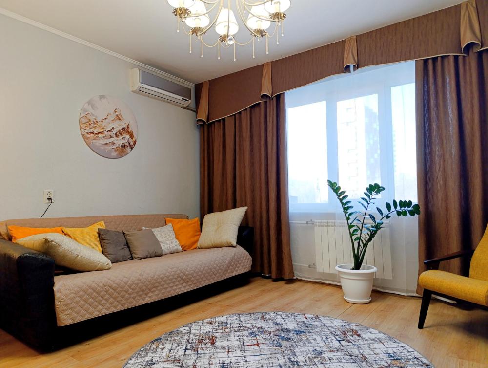 В просторной квартире 68 кв.м вам будет комфортно — она практически трехкомнатная. Две раздельные спальни и кухня-гостиная 25 кв.м, которая также отделена дверью. Во всех зонах организованы спальные места.