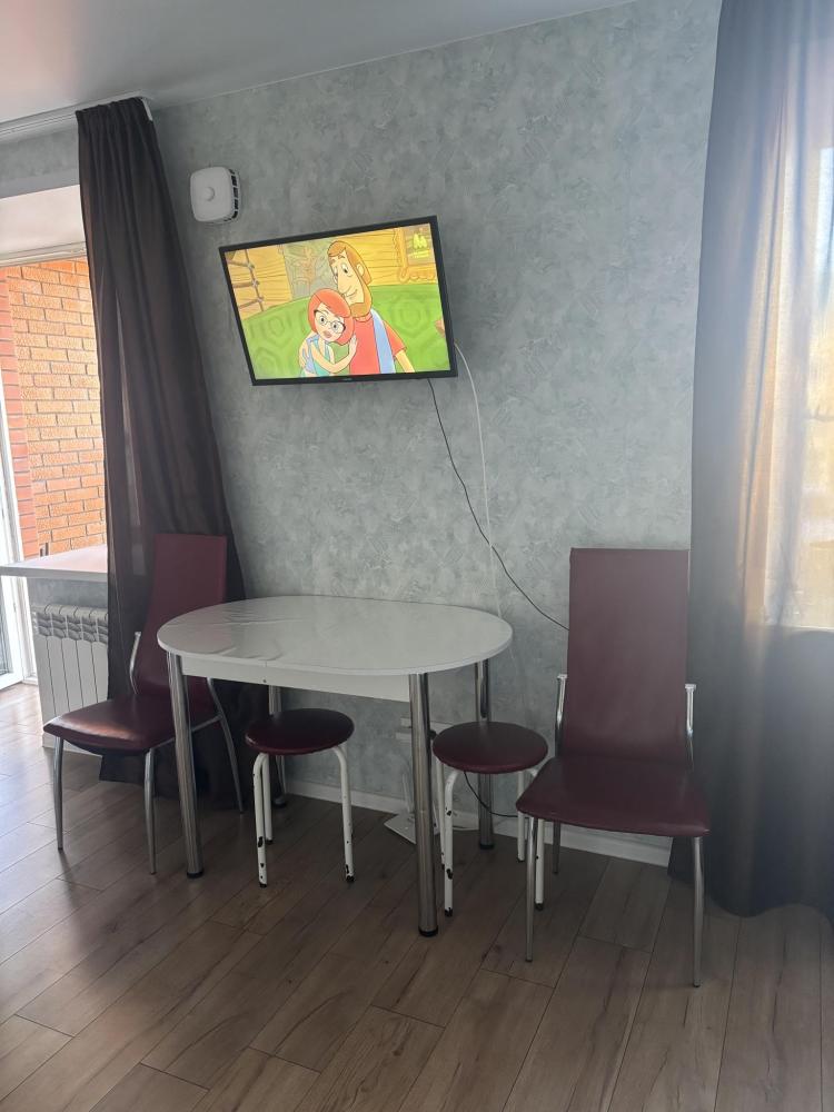 Апартаменты студия Квартира оборудована всем необходимым для комфортного проживания: двуспальная кровать, диван, кухонная зона, чайник, собственная ванная комната и туалет.