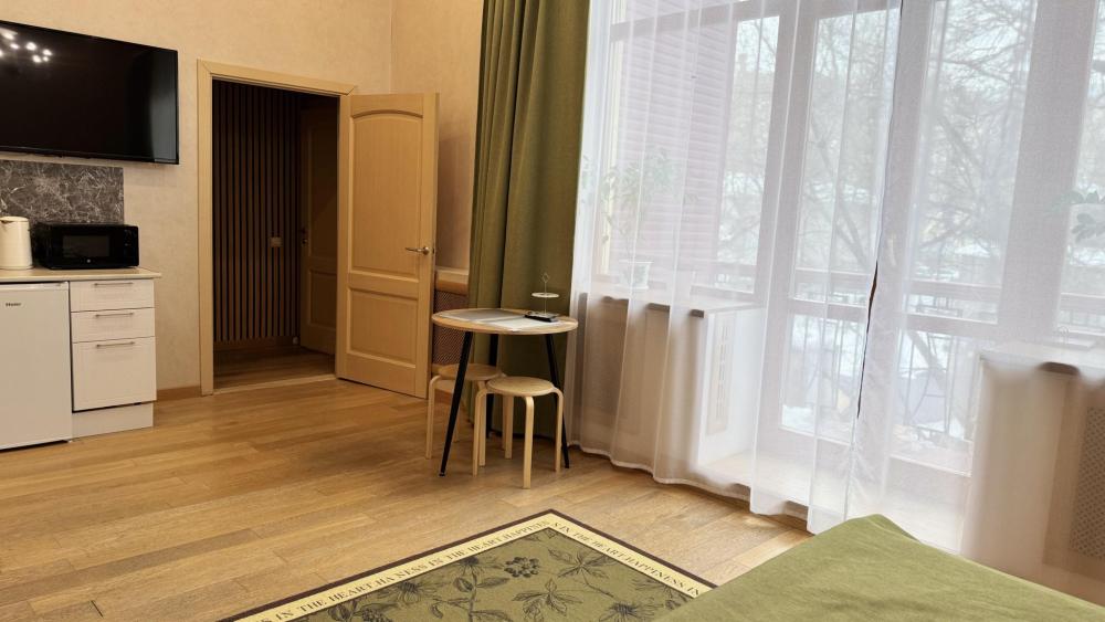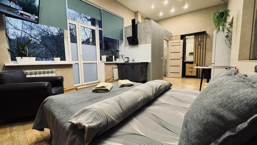 Мы ждём именно вас! Однокомнатный апартамент- студия, оснащенный всем необходимым для комфортного проживания. Без завтраков, так как в каждом номере свой кухонный гарнитур . ✅Оснащение номера: Двуспальная кровать 160*200 с подъемным механизмом , плюс дополнительно для семьи из 2-3 человек можем предоставить раскладушку , кресло-кровать размер спального места 85*194 см , телевизор( работают через интернет ) кондиционер вытяжка варочная поверхность большой холодильник с морозильной камерой электрический чайник набор посуды Шкаф обеденная зона санузел в номере ,совмещен ,Ванная комната ванна банные полотенца фен стиральная машина на 4 кг WI-FI ✅ Чем мы еще можем быть вам полезны : у нас своя придомовая территория на которой вы можете поставить машину, территория огорожена ,видео- наблюдение , от ворот даем брелок ; Здание находится в самом центре города для вас все в шаговой доступности : Площадь Ленина , Набережная , Комсомольская площадь , стадион «Динамо» ,парк «Гайдара», кинотеатр «Гигант», театры, консультативное отделение « Вивея» , рестораны,кафе,магазины . Как к нам добраться ? - такси Максим , Яндекс такси , Uber - приложение нужно скачать заранее , а так же для удобства скачайте приложение 2 ГИС . - автобус с ЖД вокзала каждые 16 минут «29 П» ; каждые 15 минут «1С» Каждые 12 минут «23» «1 Л» , «56» - троллейбус с аэропорта «1» Все автобусы с пересадками !