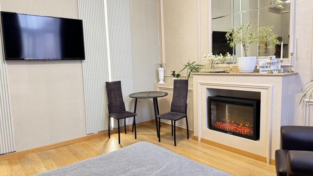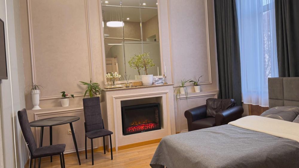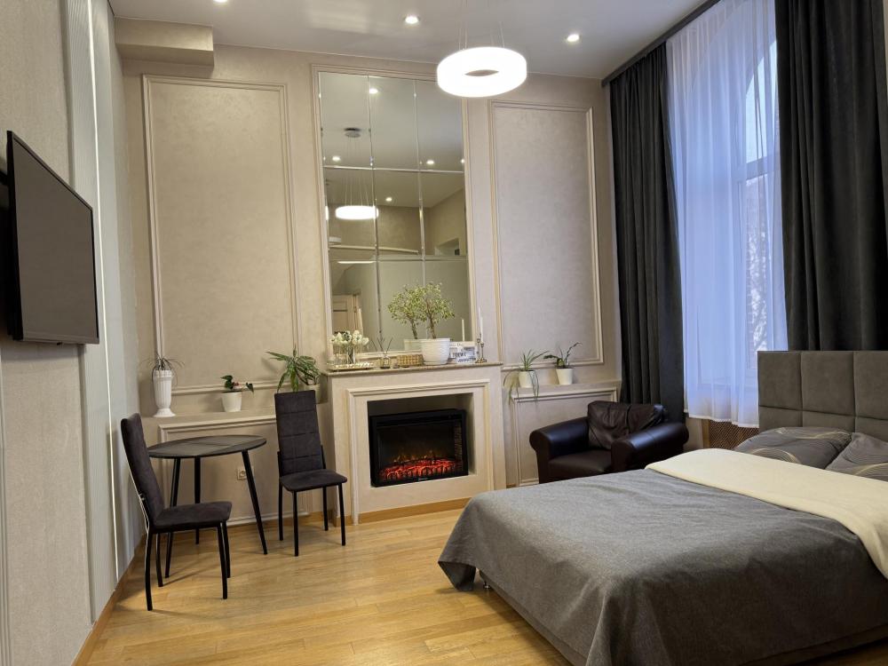 Мы ждём именно вас! Комплекс расположен в самом сердце Хабаровска ,на пересечении улиц Фрунзе-Муравьева Амурского ,Амурский бульвар, Уссурийский бульвар , Запарина , Калинина . Развитая транспортная инфраструктура позволяет быстро добраться в любую точку города. Однокомнатный апартамент-студия, оснащенный всем необходимым для комфортного размещения одного или двух гостей. Апартамент подойдет для проживания гостей, прибывающих в деловые и туристические поездки, на период учебы, а также на время проведения городских мероприятий. Оснащение номера : двуспальная кровать с подъемным механизмом Камин телевизор кондиционер варочная поверхность холодильник электрический чайник набор посуды обеденная зона микроволновая печь паровой утюг средства для мытья посуды Ванная комната Ванна банные полотенца фен косметические средства Прочее Wi-fi