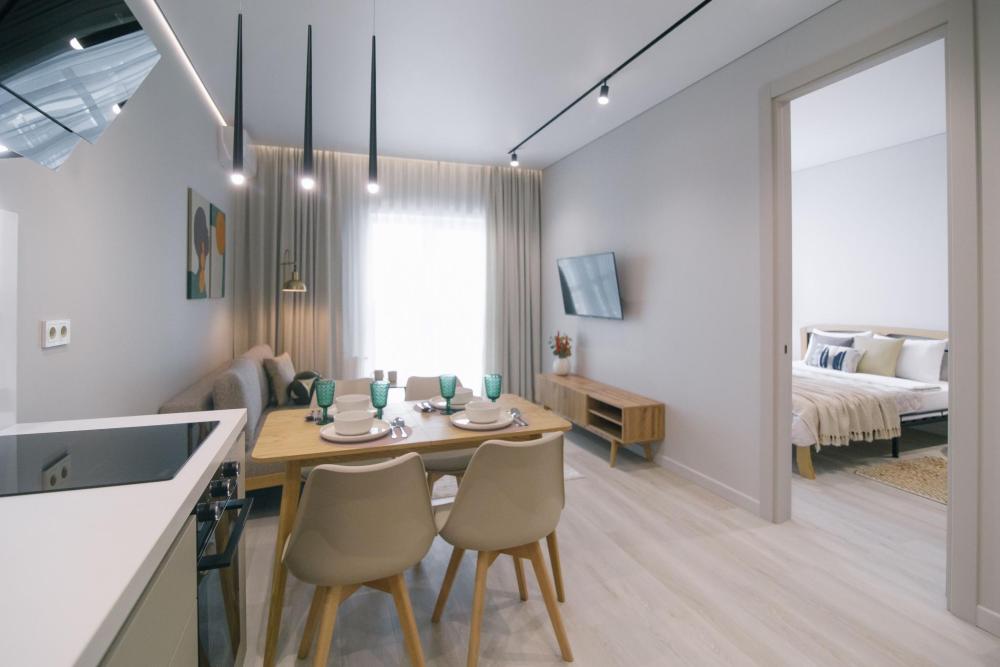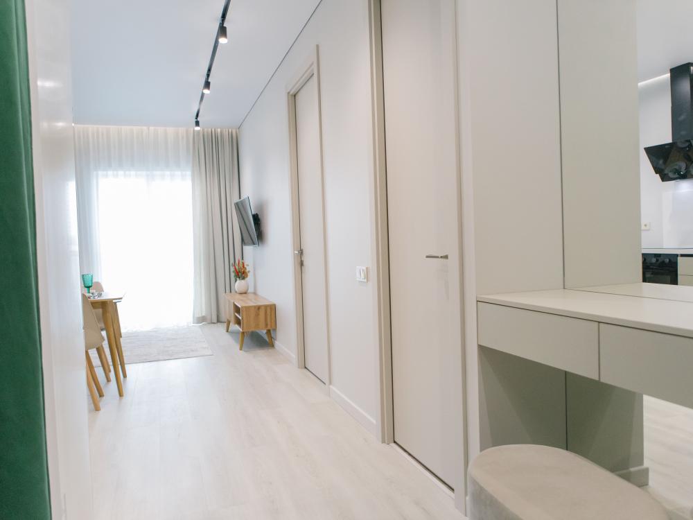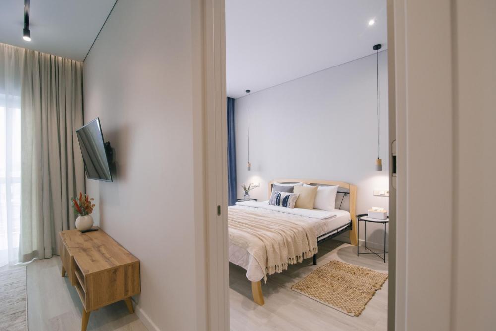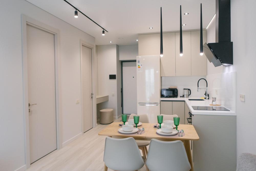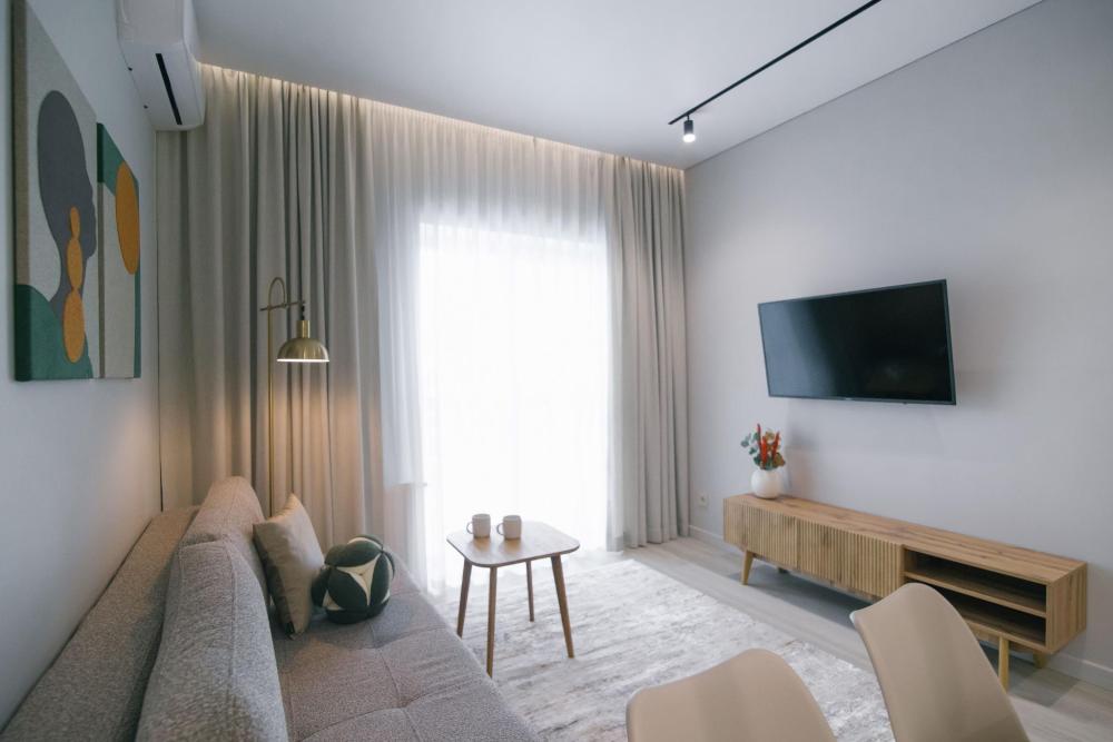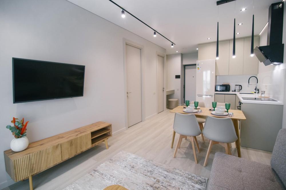 Двухкомнатная квартира в современном доме. Квартира расположена на 17 этаже с красивым видом на город. Рядом с домом продуктовый супермаркет и ресторан.