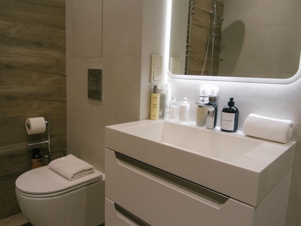 ✅ Наличие гигиенических принадлежностей: гель для душа, шампунь и кондиционер, средство для мытья посуды, стиральный порошок, аптечка и другие нужные мелочи.