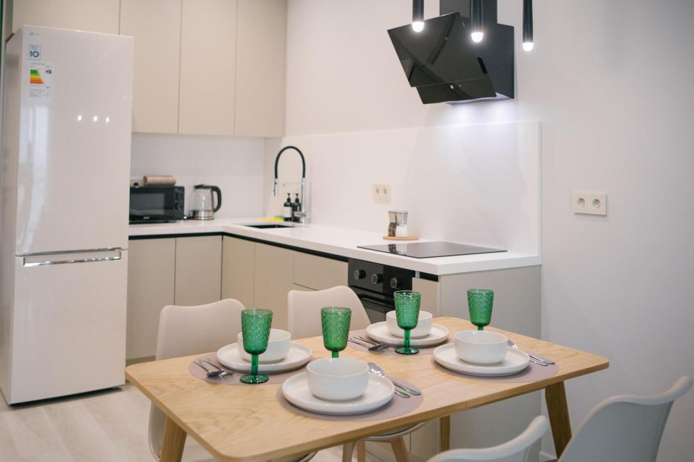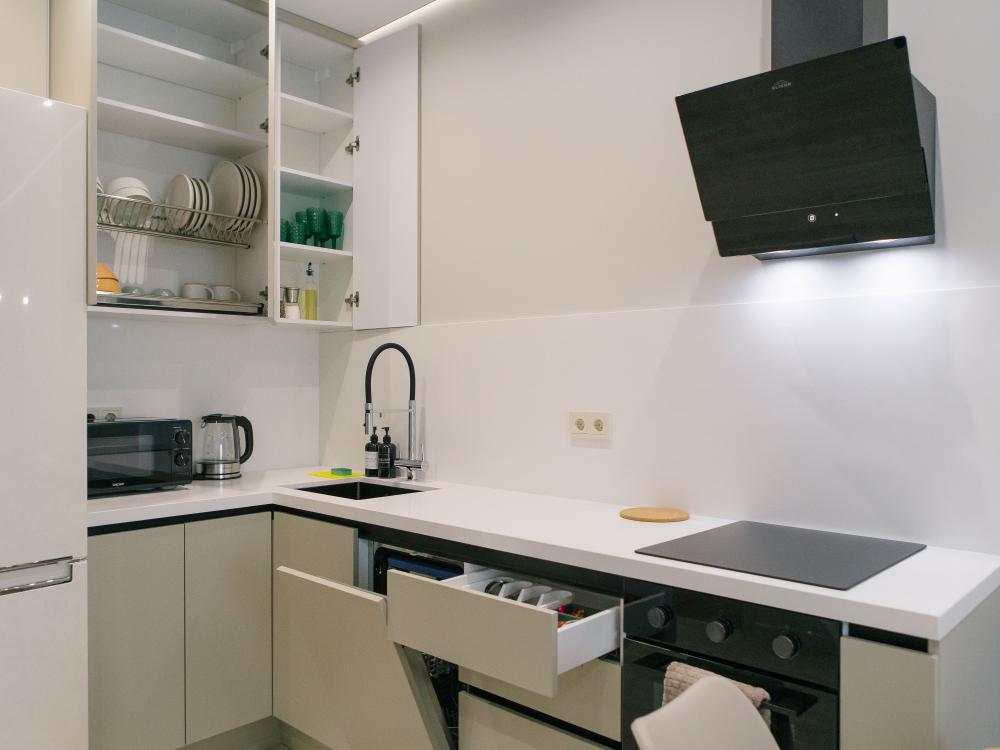 ✅ Полный набор посуды, столовые приборы, кастрюли и разные кухонные мелочи;