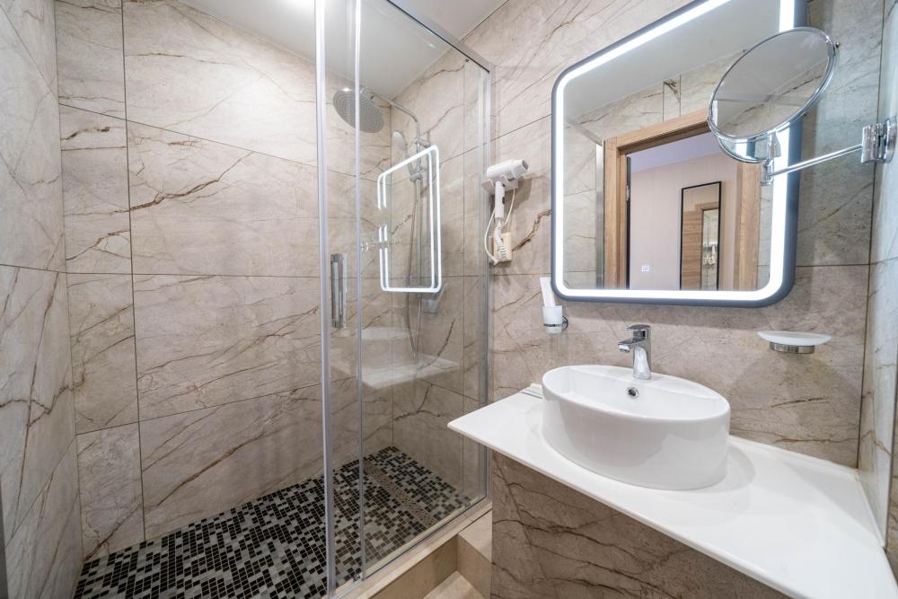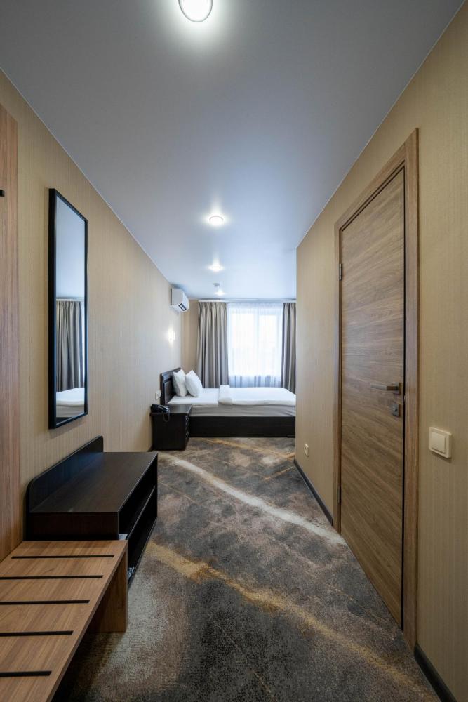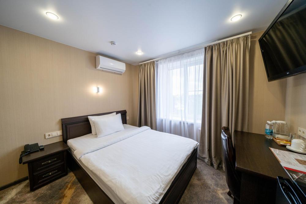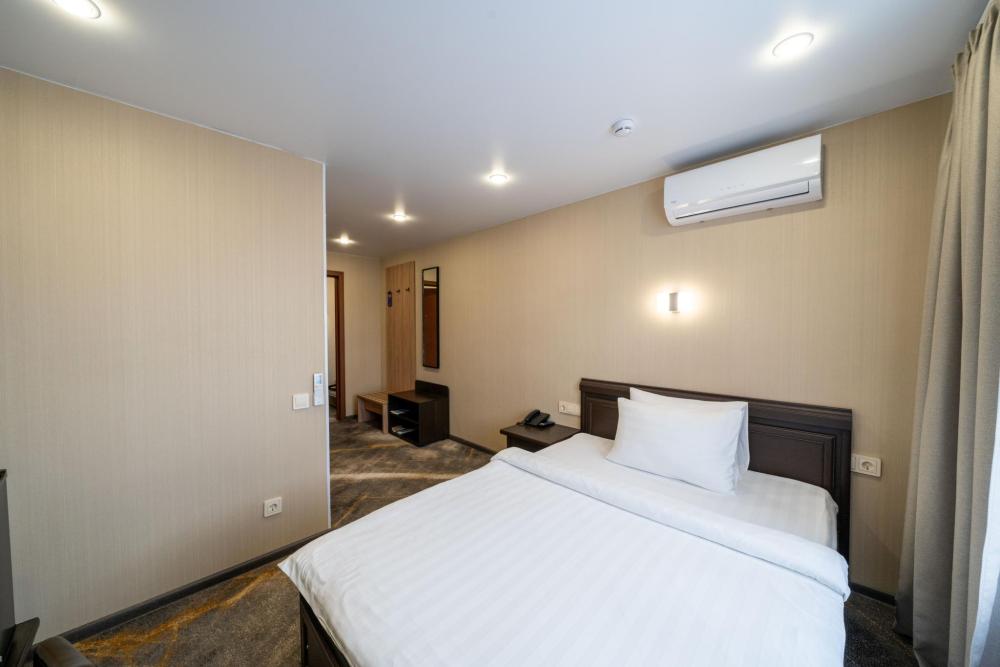 Современные номера выполнены в изысканном классическом стиле и оформлены в приятной, тёплой цветовой гамме. Категории оборудованы необходимой мебелью и техникой для комфортного проживания. Собственные ванные комнаты включают в себя одноразовые гигиенические принадлежности. Почувствовать атмосферу гостеприимства Вы сможете, едва переступив порог отеля. Окна номеров предусматривают портьеры, дающие полное затемнение в любое время суток.