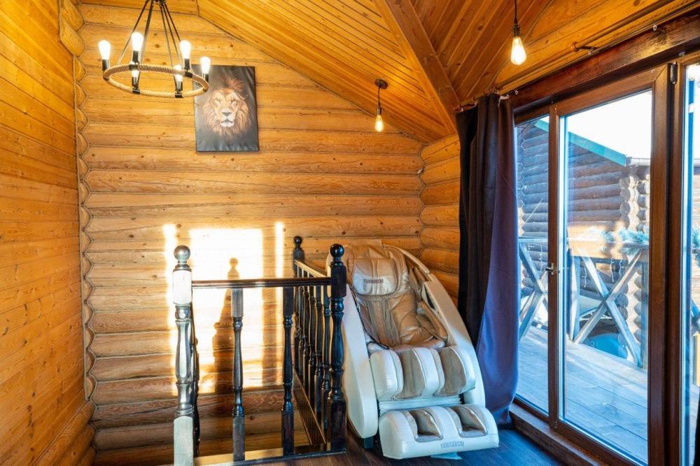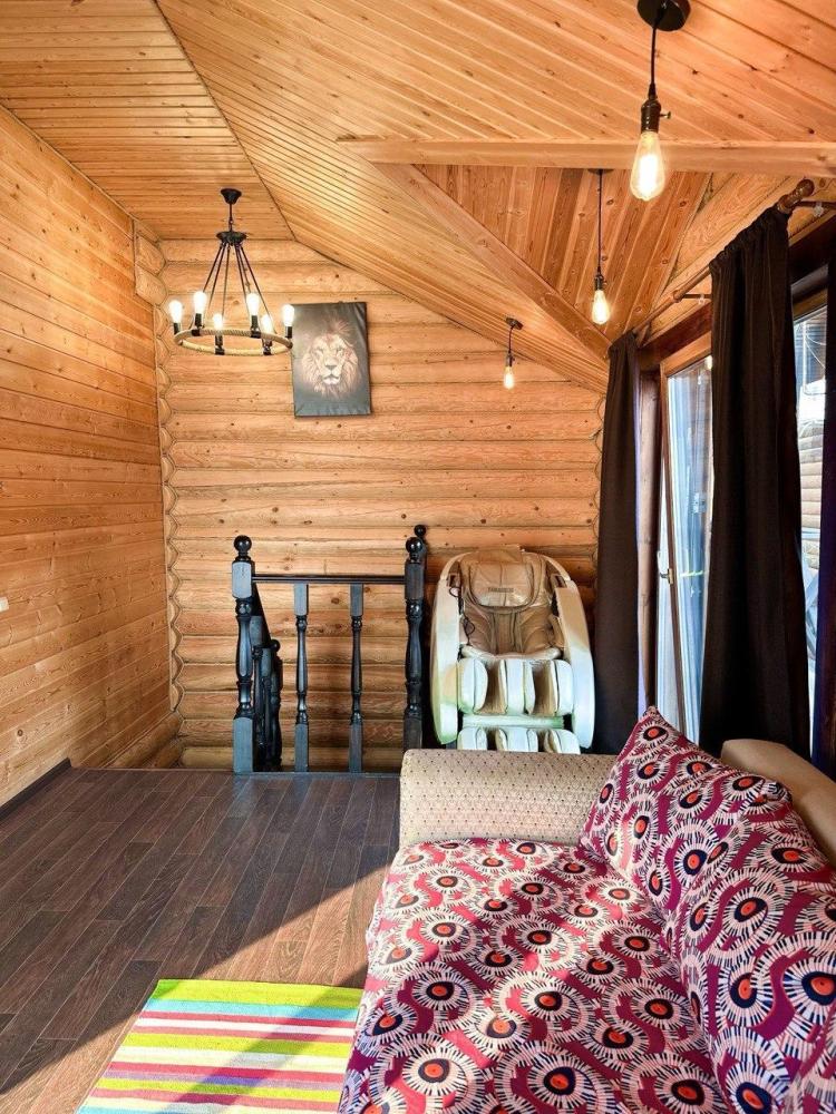Уютный коттедж площадью 60 кв.м. для размещения до 6-ти гостей. Для комфортного проживания гостей дом оснащен всем необходимым. Внутри деревянного коттеджа: уютные и мягкие кровати, чистое постельное белье и полотенца, кухня, микроволновая печь, холодильник, чайник, телевизор, обеденная зона, а так же Кресло Yamaguchi (оплачивается отдельно), которое поможет расслабиться после посещения сауны, купели (находится прямо в доме) или бассейна. На территории для гостей есть шезлонги, бассейн, мангальная зона. Шикарные закаты в хорошую погоду гарантированы.