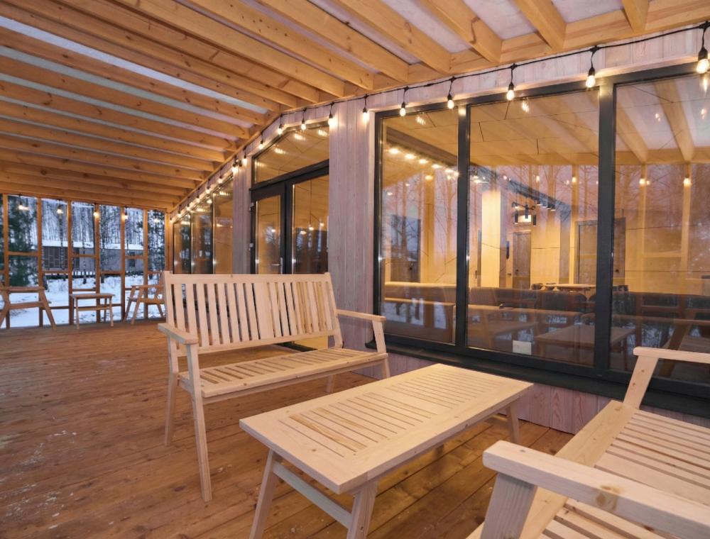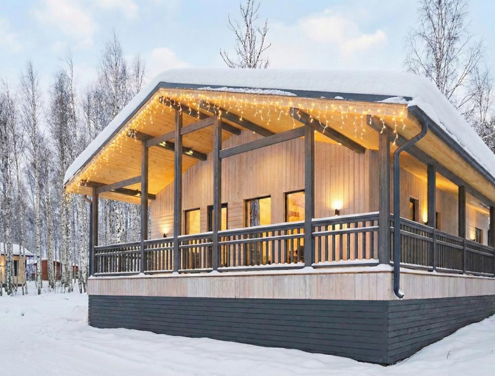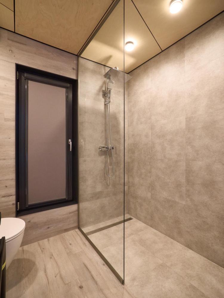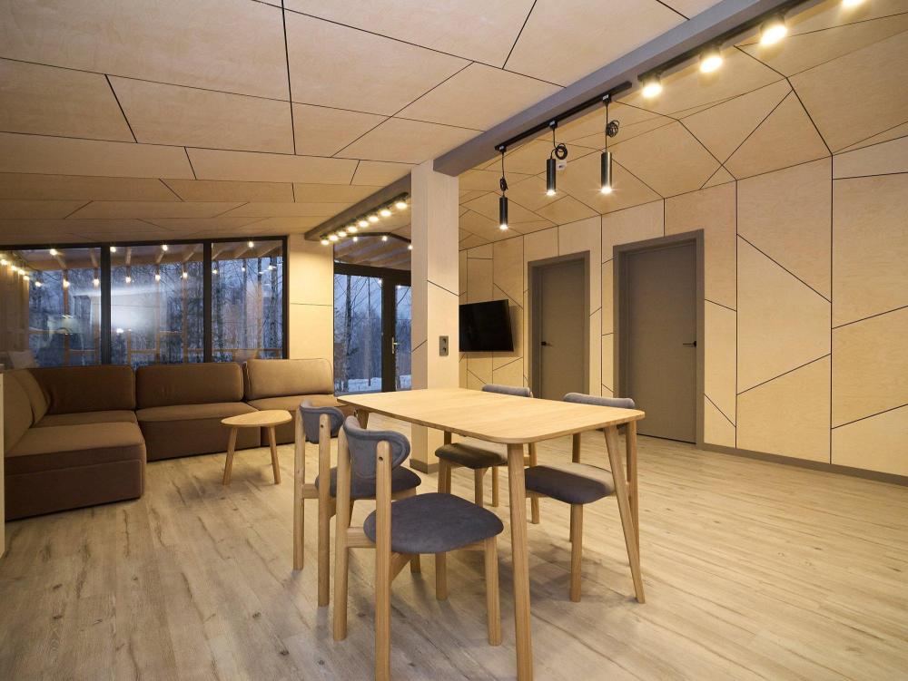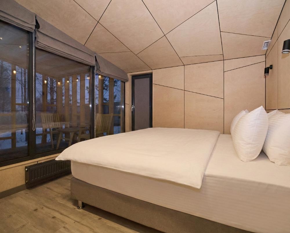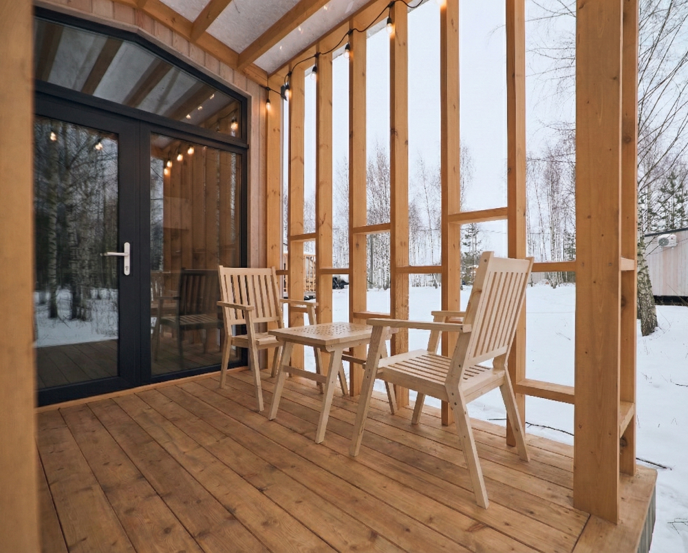 Комфортабельный и просторный дом площадью 103 кв.м, идеально подходящий для семейного или дружеского отдыха, до 8-ми гостей. Отличается продуманным наполнением и наличием большой открытой веранды с зоной для барбекю. Вид на лес и реку. В доме просторная спальня-гостиная с большой двуспальной кроватью и панорамными окнами, из которых открывается вид на лесной массив (двуспальная кровать трансформер и раскладной диван), современная кухня с варочной панелью, холодильником, кофемашиной, СВЧ и посудой телевизор в гостиной и спальне, колонка “JBL” для удобства и развлечений, веранда 11 м² - место для утреннего кофе или вечернего отдыха с книгой, панорамные окна в спальне и на веранде открывают вид на окружающую природу, теплый пол, радиатор и кондиционер, современная душевая с предметами гигиены, общий участок с индивидуальным подходом к домику, высокоскоростной интернет/WI-FI. Кухня полностью оборудована для длительного проживания: микроволновка, минибар, холодильник, столовые приборы, обеденный стол, кофе/чай, кофемашина/кофеварка, чайник. В ванной комнате: халаты, тапочки, туалетно-косметические принадлежности, душ, фен.