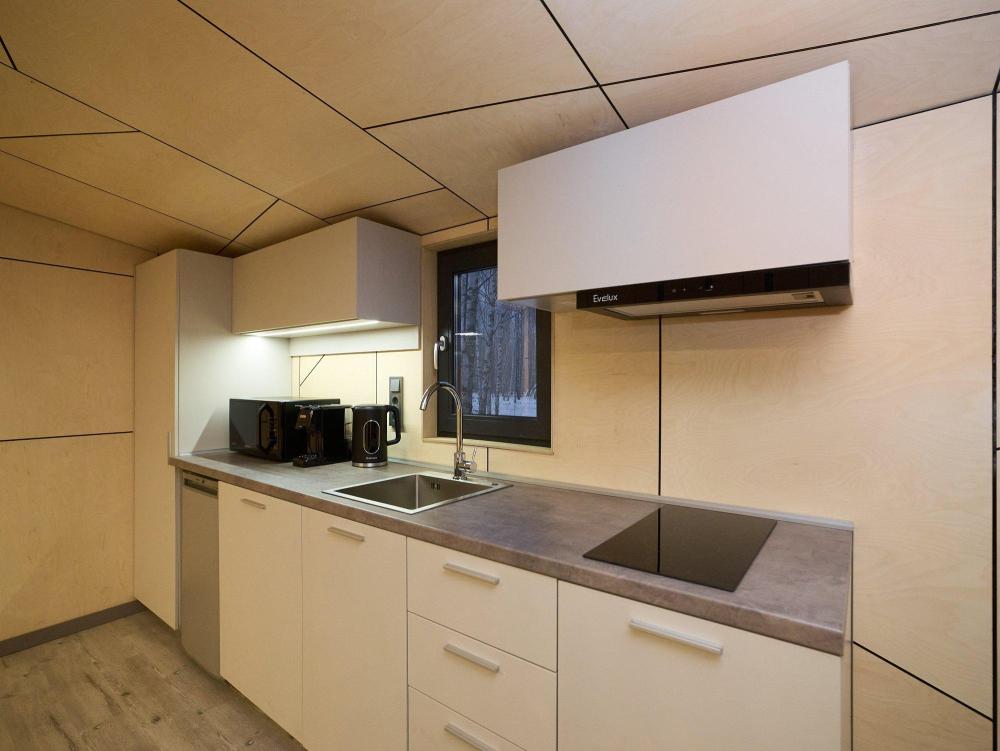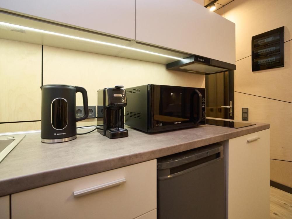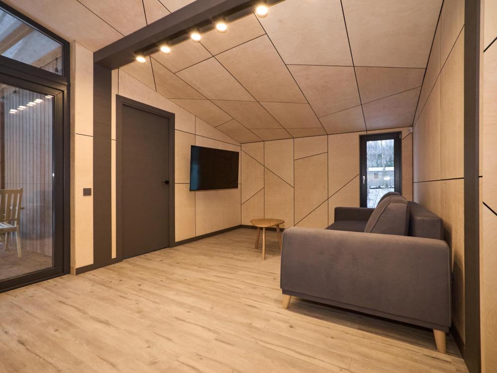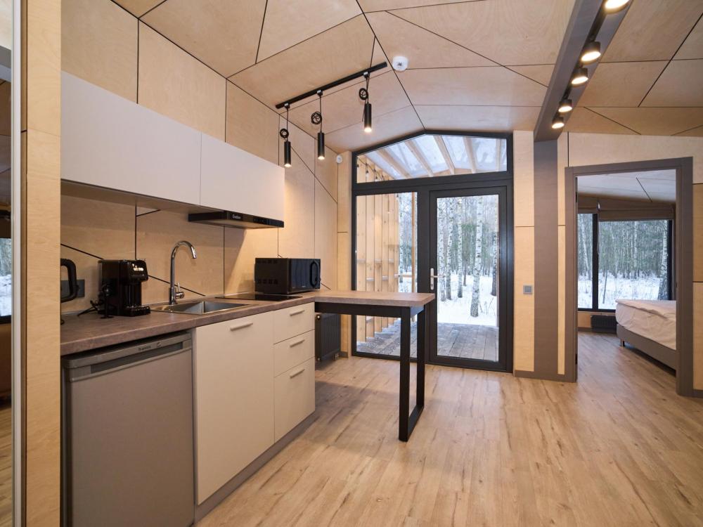 Современная уютная студия, созданная для тех, кто любит тишину, спокойствие и уединение. Компактное пространство продумано до мелочей: мягкий свет, удобная кровать, полноценная мини-кухня и аккуратная веранда, на которой так приятно выпить утренний кофе. Дом One - идеальный выбор для романтического отдыха, короткой перезагрузки или спокойных выходных вдвоём. Площадь дома - 35 кв.м. В доме: просторная спальня-гостиная, панорамные окна в спальне и гостиной с видом на лесной массив, двуспальная кровать трансформер на 2 человек, раскладной диван на 1 взрослого или 2 детей, современная кухня с варочной панелью, холодильником, кофемашиной, СВЧ и посудой, телевизор в гостиной и спальне, колонка “JBL” для удобства и развлечений, веранда 11 м² - место для утреннего кофе или вечернего отдыха с книгой, теплый пол, радиатор и кондиционер, современная душевая с предметами гигиены, общий участок с индивидуальным подходом к домику, высокоскоростной интернет/WI-FI. Кухня полностью оборудована для длительного проживания, в которой есть всё необходимое для приготовления еды: посуда, столовые приборы, микроволновка, минибар, холодильник, обеденный стол, кофе/чай, кофемашина/кофеварка, чайник. Оснащение ванной: халаты, тапочки, туалетно-косметические принадлежности, душ, фен.