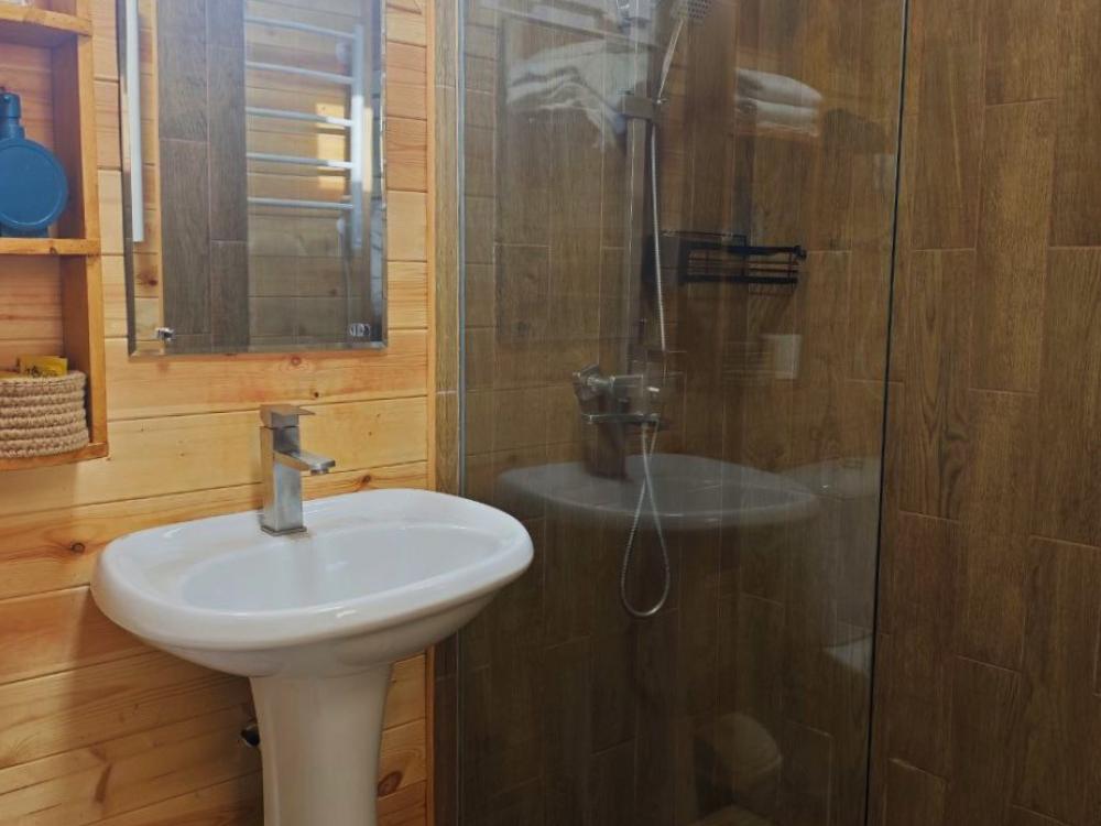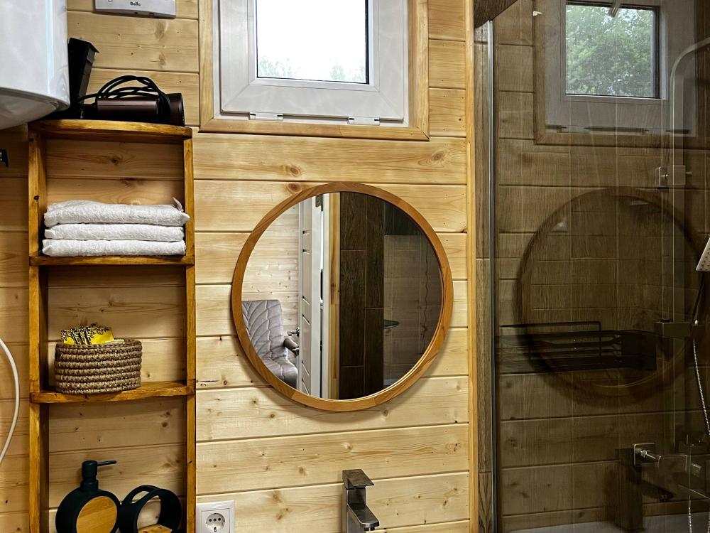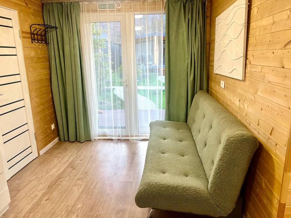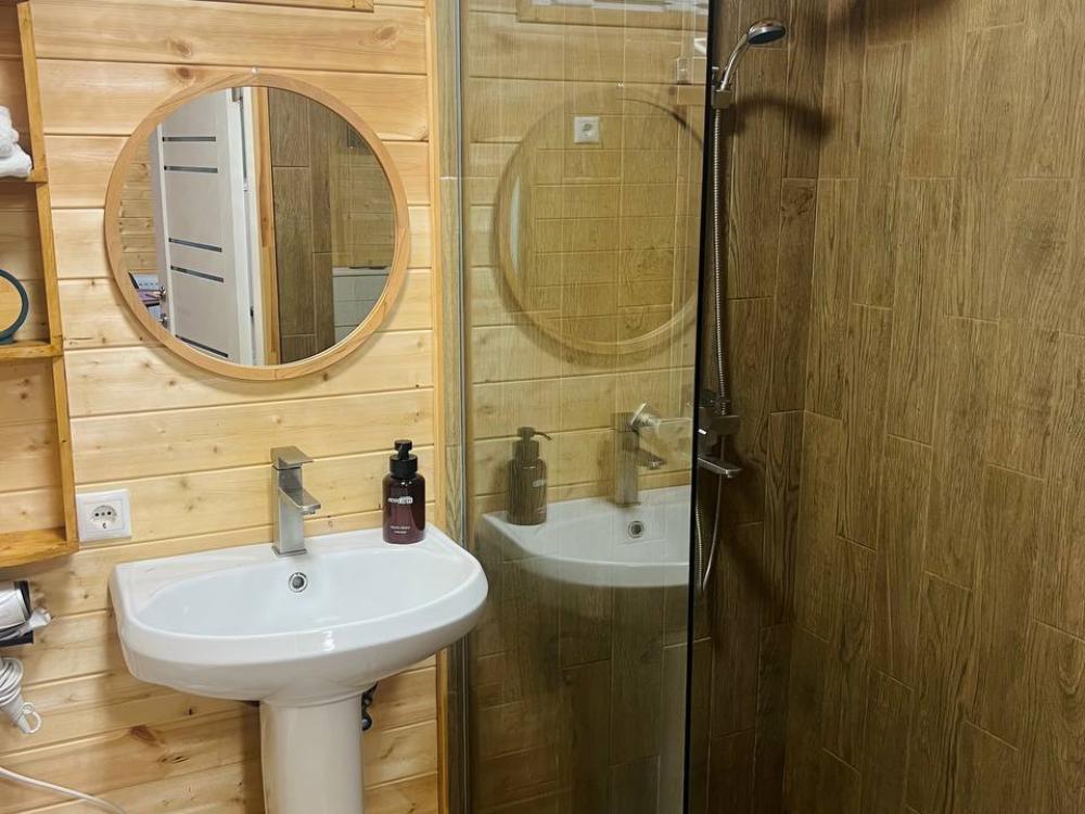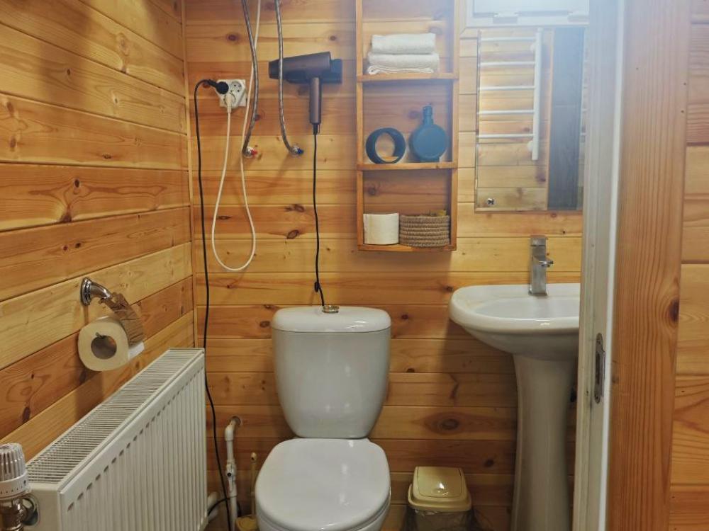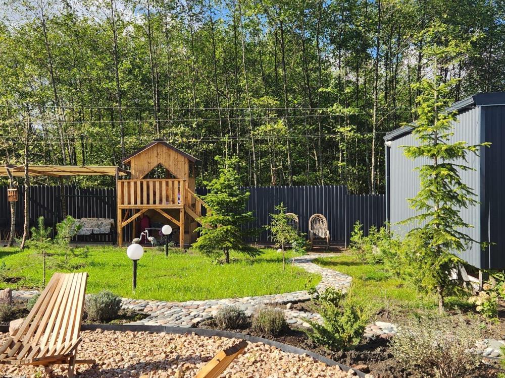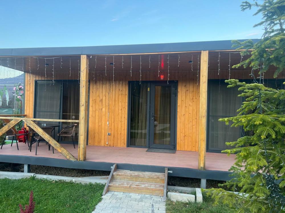 Уютный дом с террасой вместимостью до 5 гостей. Отдельная спальня и кухня-гостиная. Спальные места: двуспальная кровать, двуспальный диван-кровать, раскладное кресло. В домике всё необходимое для комфортного проживания: кухня (электрическая плита, холодильник, чайник, СВЧ-печь, посуда и принадлежности), TV, сплит-система, отопление, обеденная зона, санузел с душевой кабиной.
