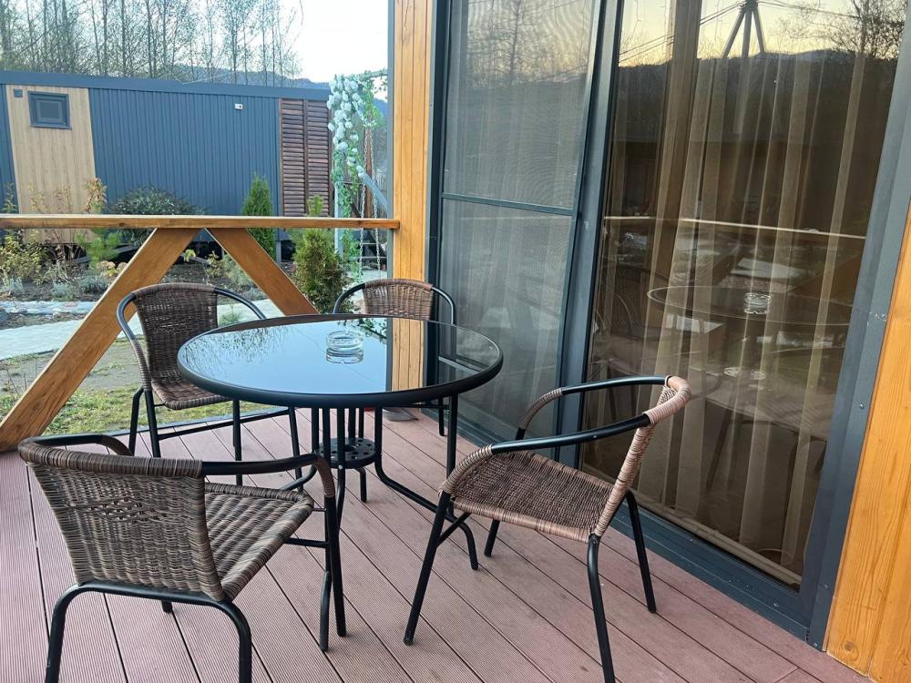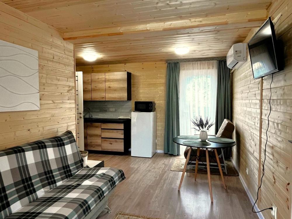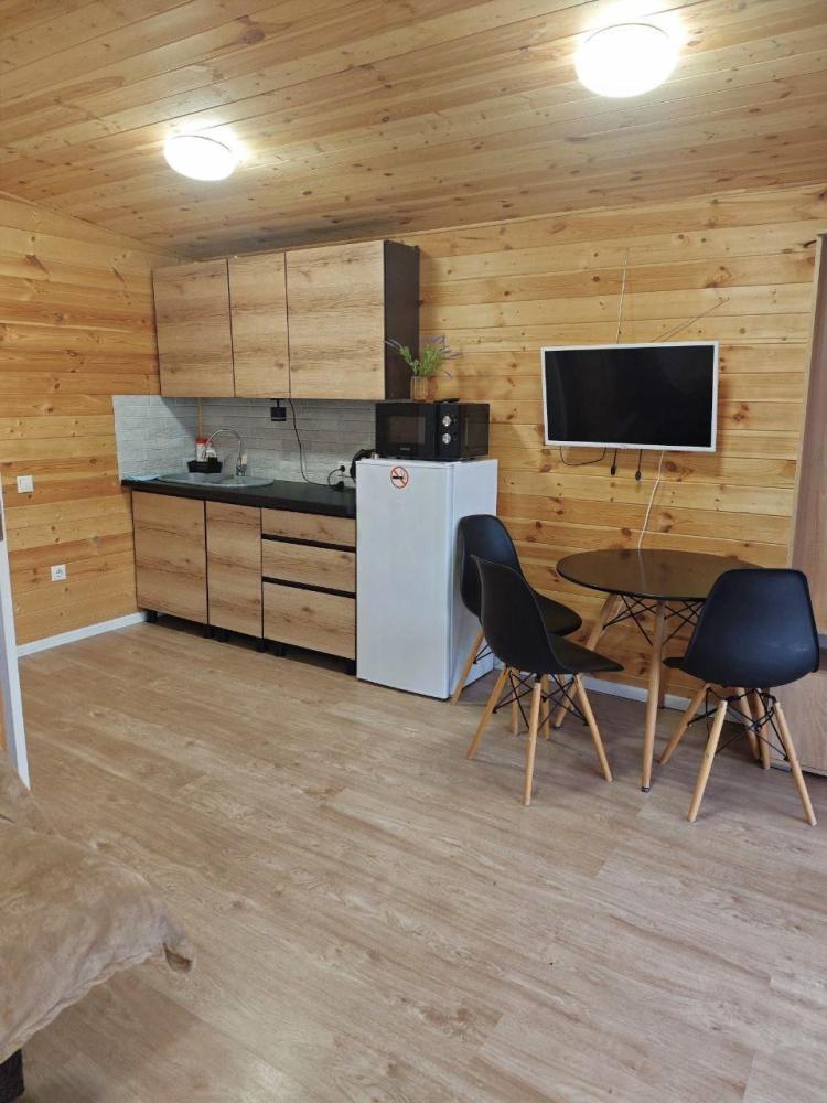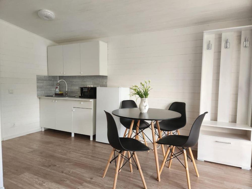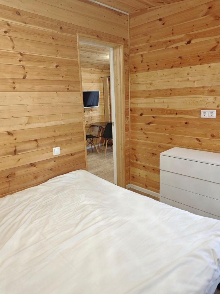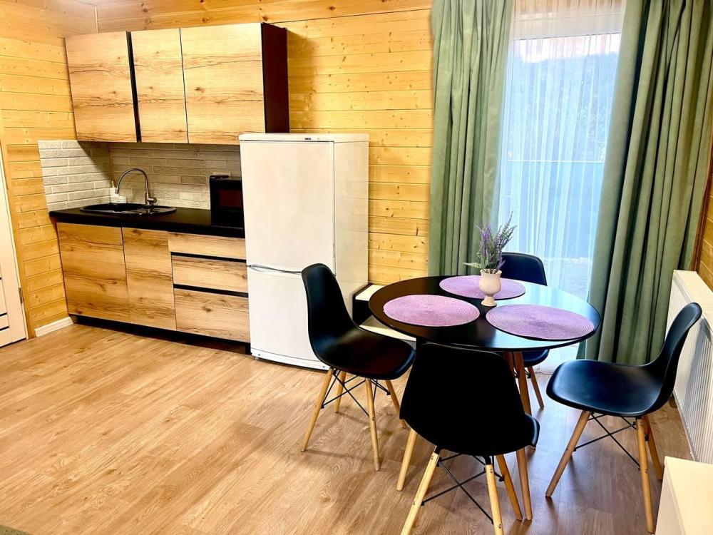 Уютный дом с террасой вместимостью до 5 гостей. Отдельная спальня и кухня-гостиная. Спальные места: двуспальная кровать, двуспальный диван-кровать, раскладное кресло. В домике всё необходимое для комфортного проживания: кухня (электрическая плита, холодильник, чайник, СВЧ-печь, посуда и принадлежности), TV, сплит-система, отопление, обеденная зона, санузел с душевой кабиной.