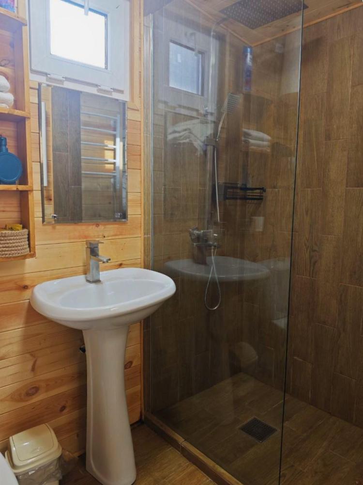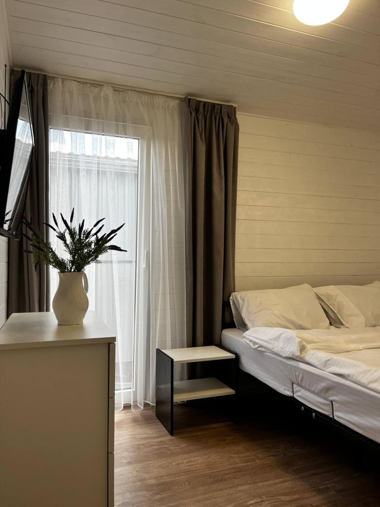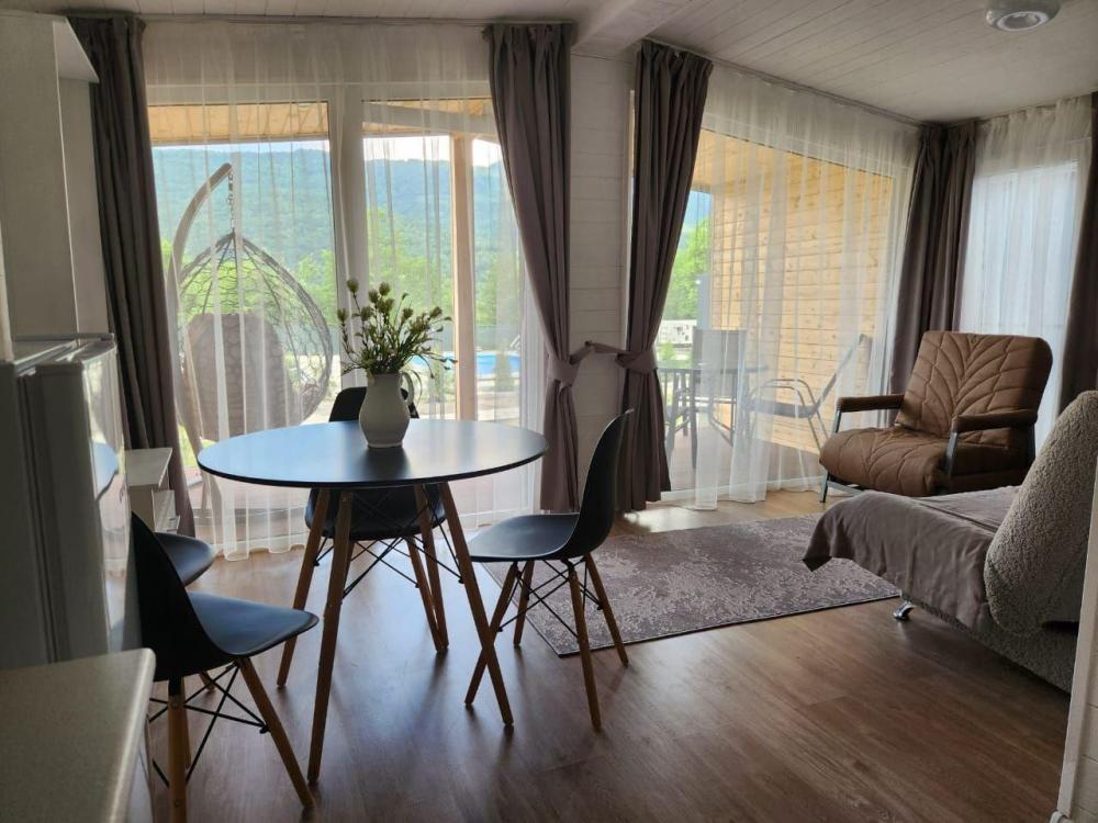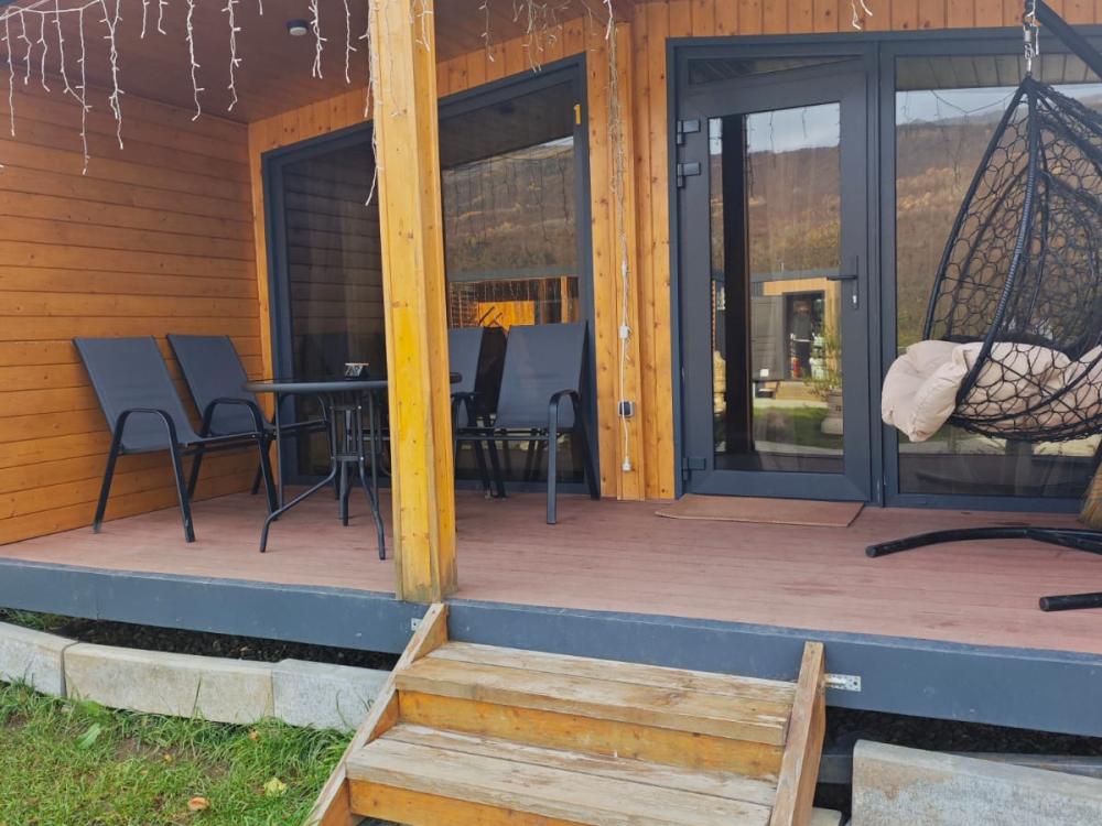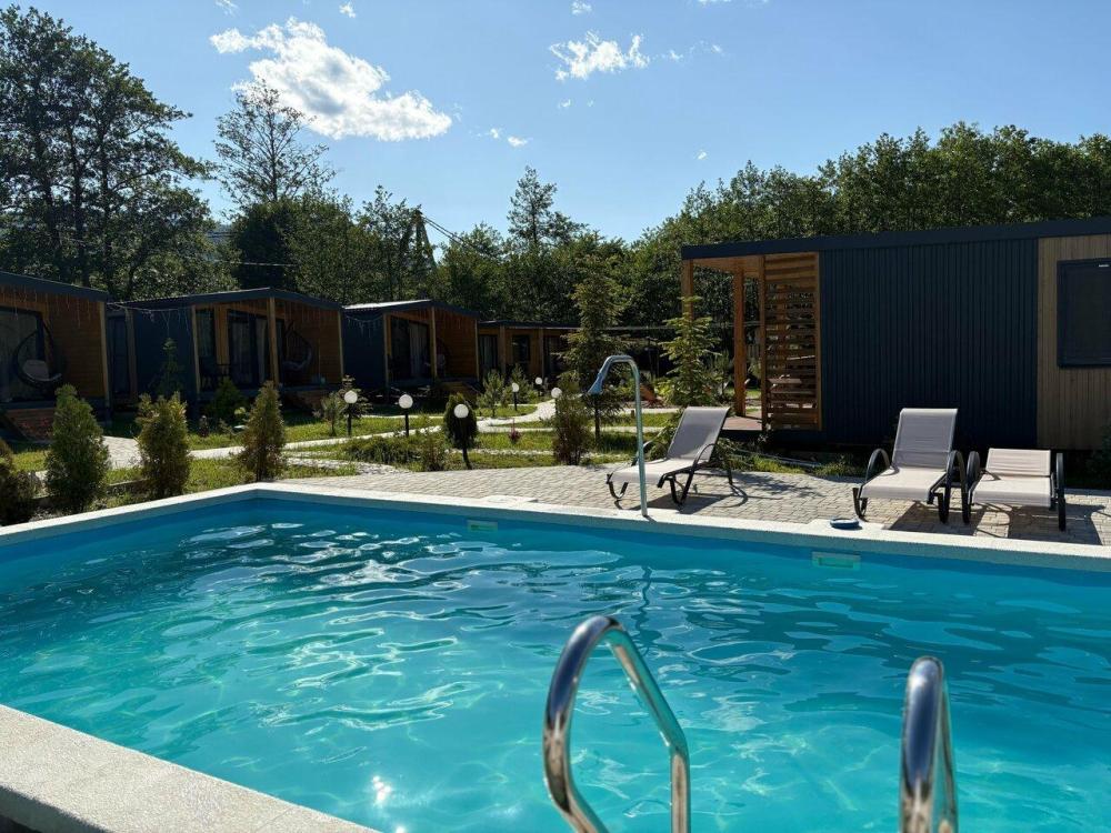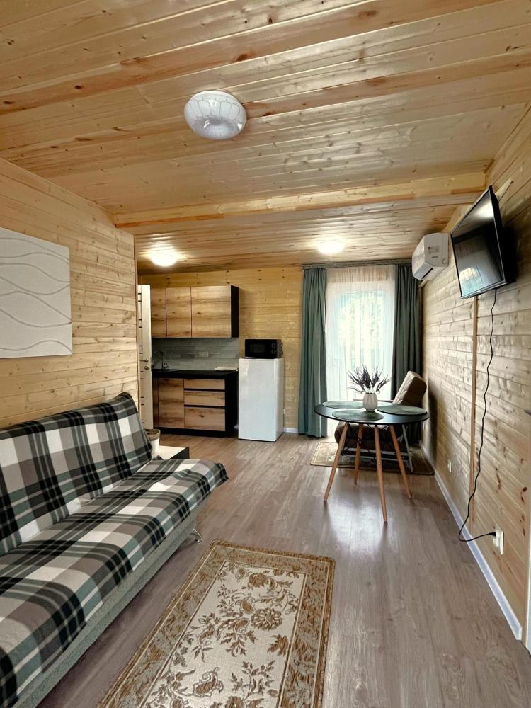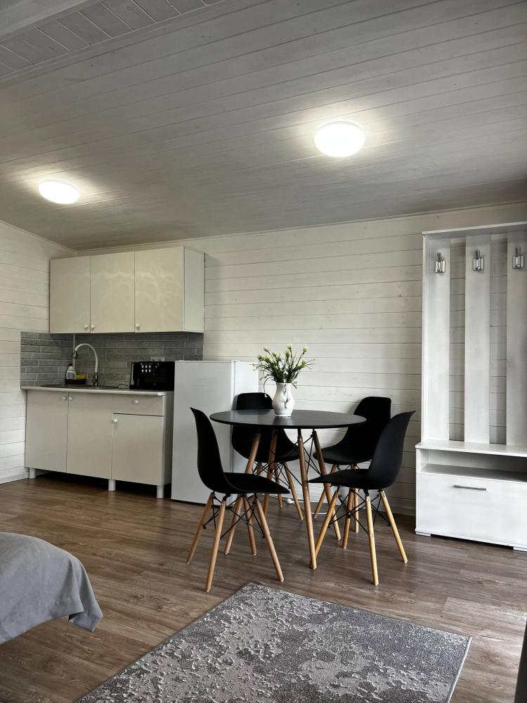 Уютный дом с террасой вместимостью до 5 гостей. Отдельная спальня и кухня-гостиная. Спальные места: двуспальная кровать, двуспальный диван-кровать, раскладное кресло. В домике всё необходимое для комфортного проживания: кухня (электрическая плита, холодильник, чайник, СВЧ-печь, посуда и принадлежности), TV, сплит-система, отопление, обеденная зона, санузел с душевой кабиной.