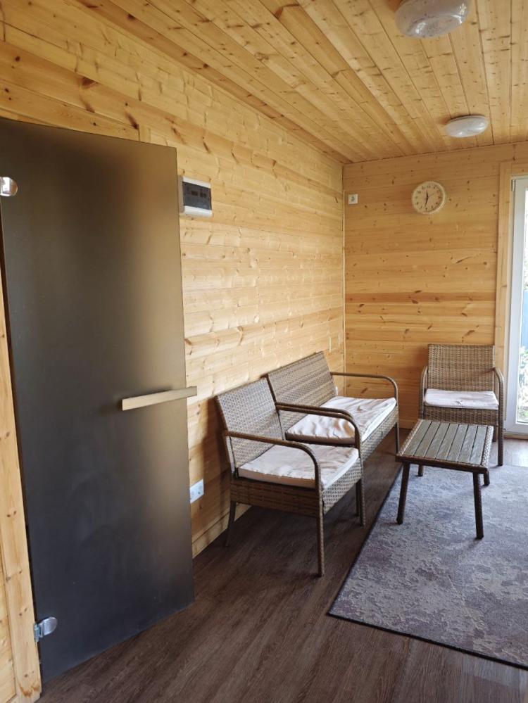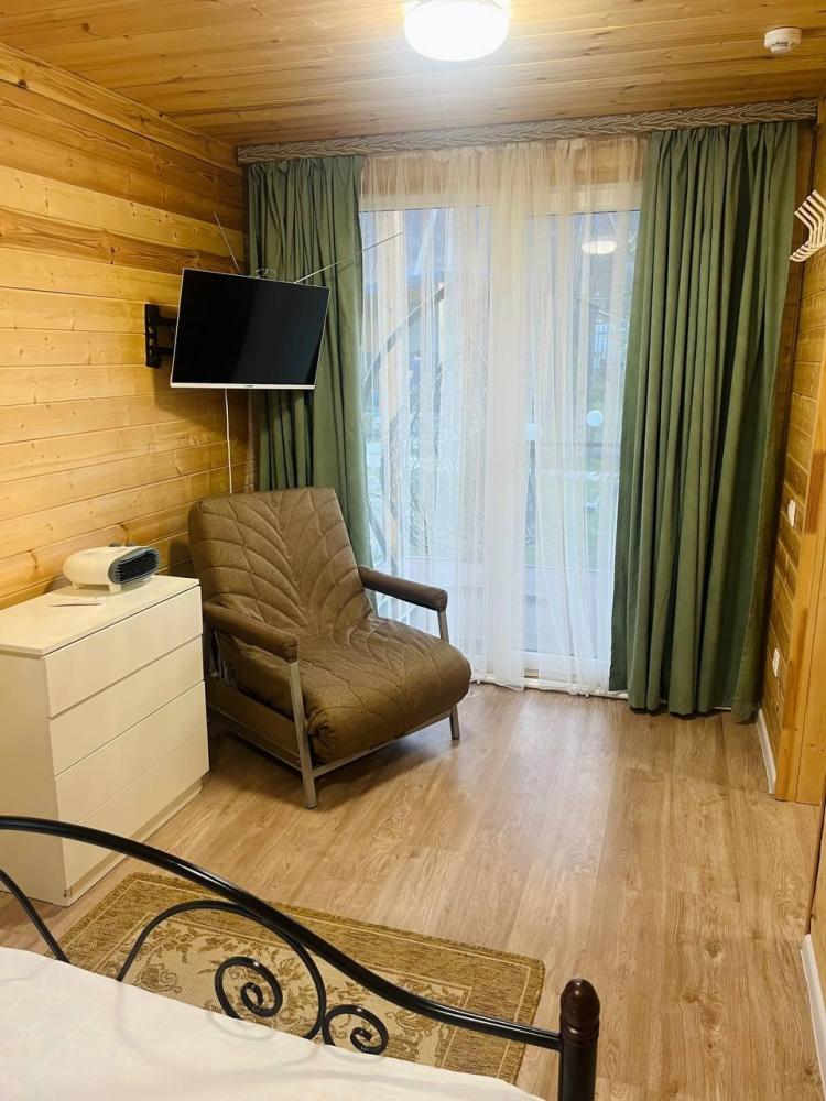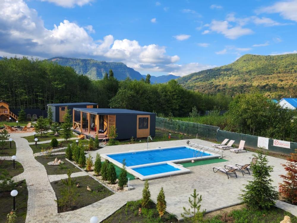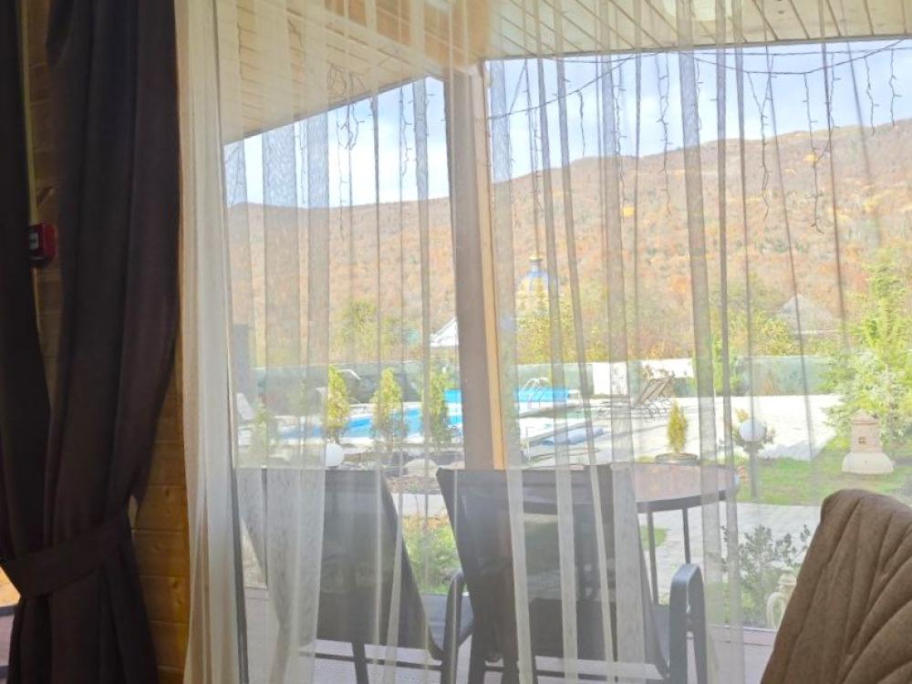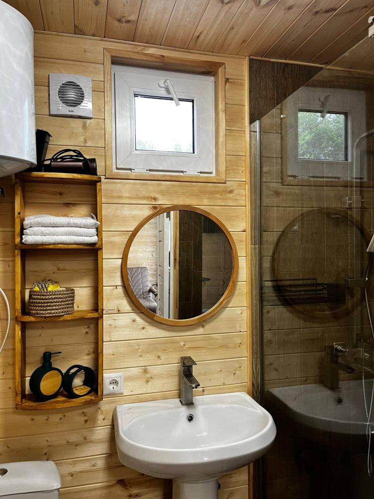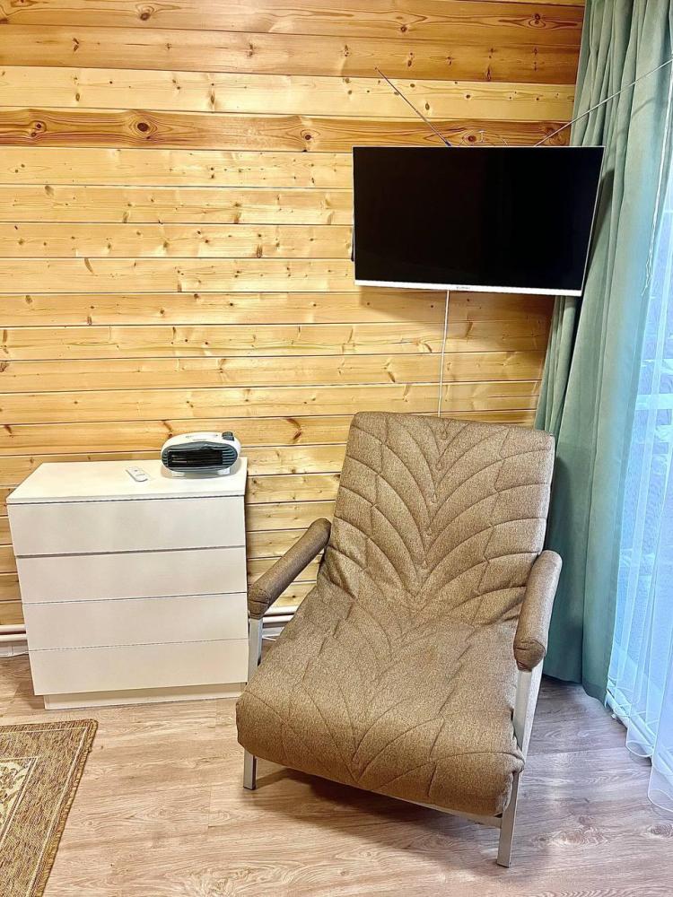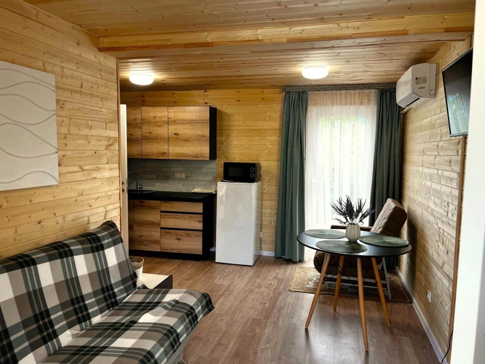 Уютный дом с террасой вместимостью до 5 гостей. Отдельная спальня и кухня-гостиная. Спальные места: двуспальная кровать, двуспальный диван-кровать, раскладное кресло. В домике всё необходимое для комфортного проживания: кухня (электрическая плита, холодильник, чайник, СВЧ-печь, посуда и принадлежности), TV, сплит-система, отопление, обеденная зона, санузел с душевой кабиной.