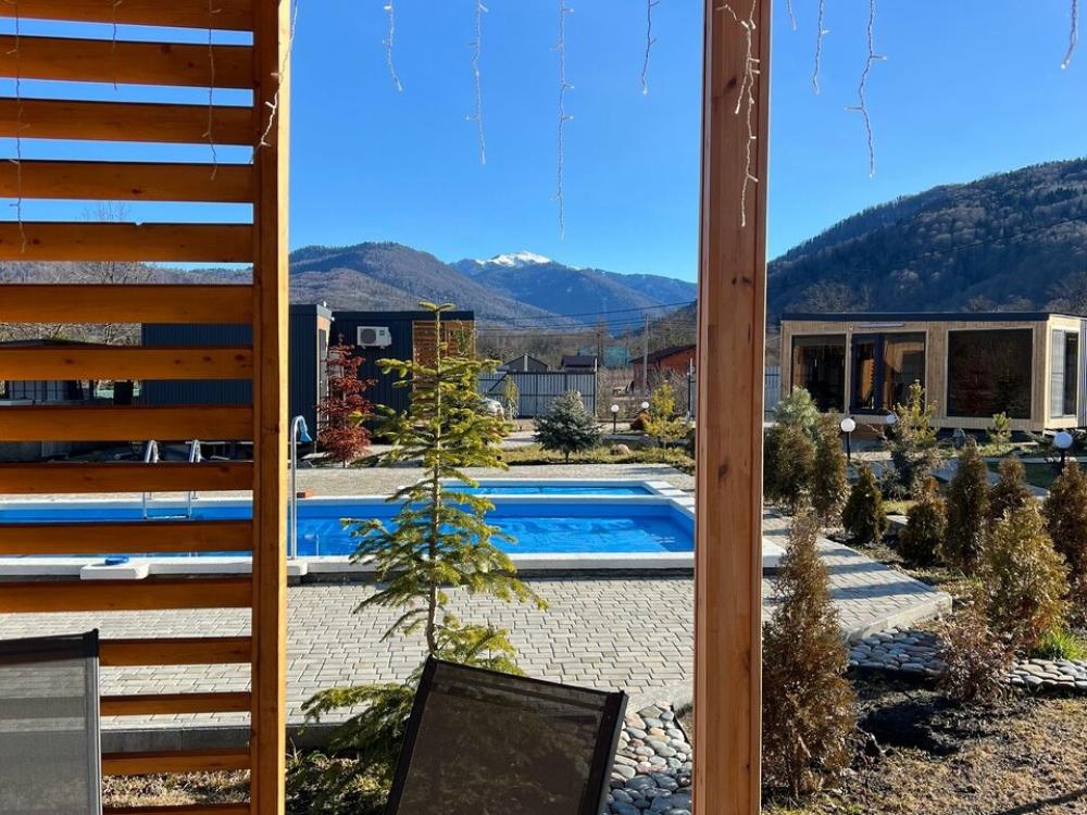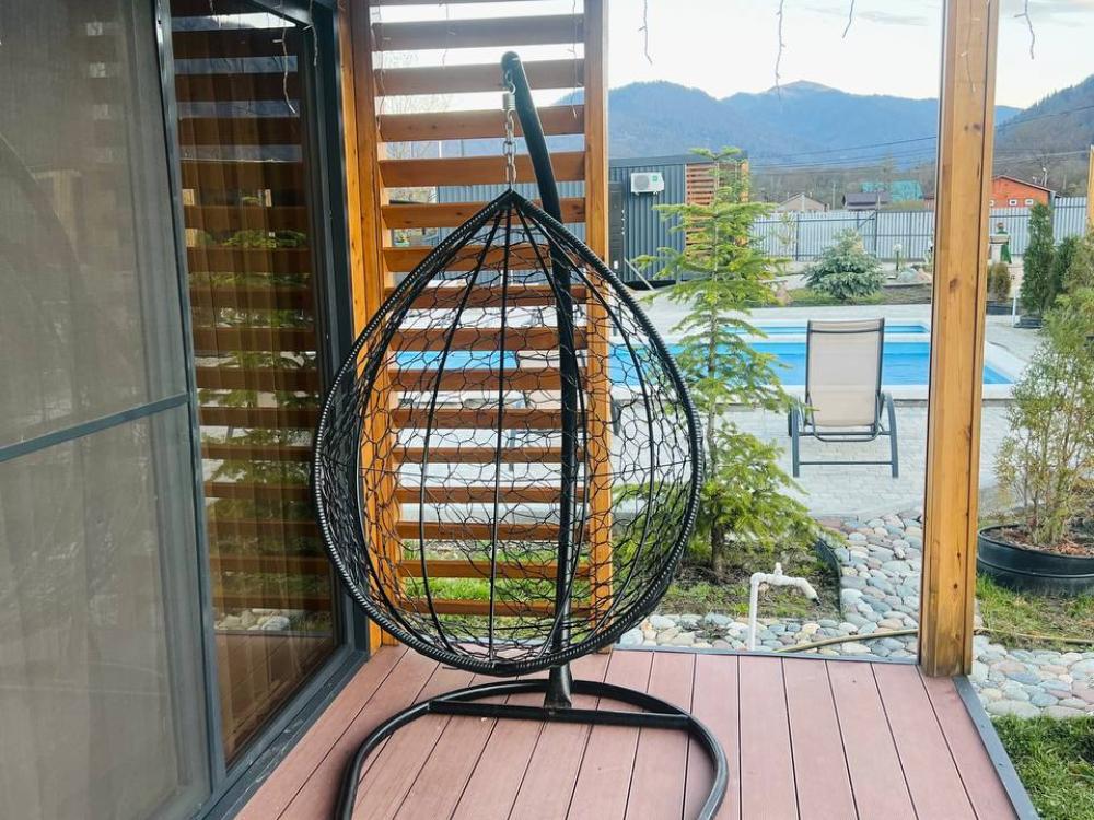 Дом с террасой вместимостью до 7 гостей. Две отдельные спальни и кухня- гостиная. Спальные места: две двуспальные кровати, двуспальный диван-кровать, раскладное кресло. В домике всё необходимое для комфортного проживания: кухня (электрическая плита, холодильник, чайник, СВЧ-печь, посуда и принадлежности), TV, сплит-система, отопление, обеденная зона, санузел с душевой кабиной.