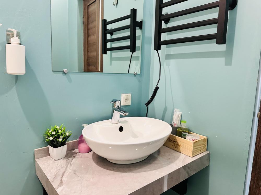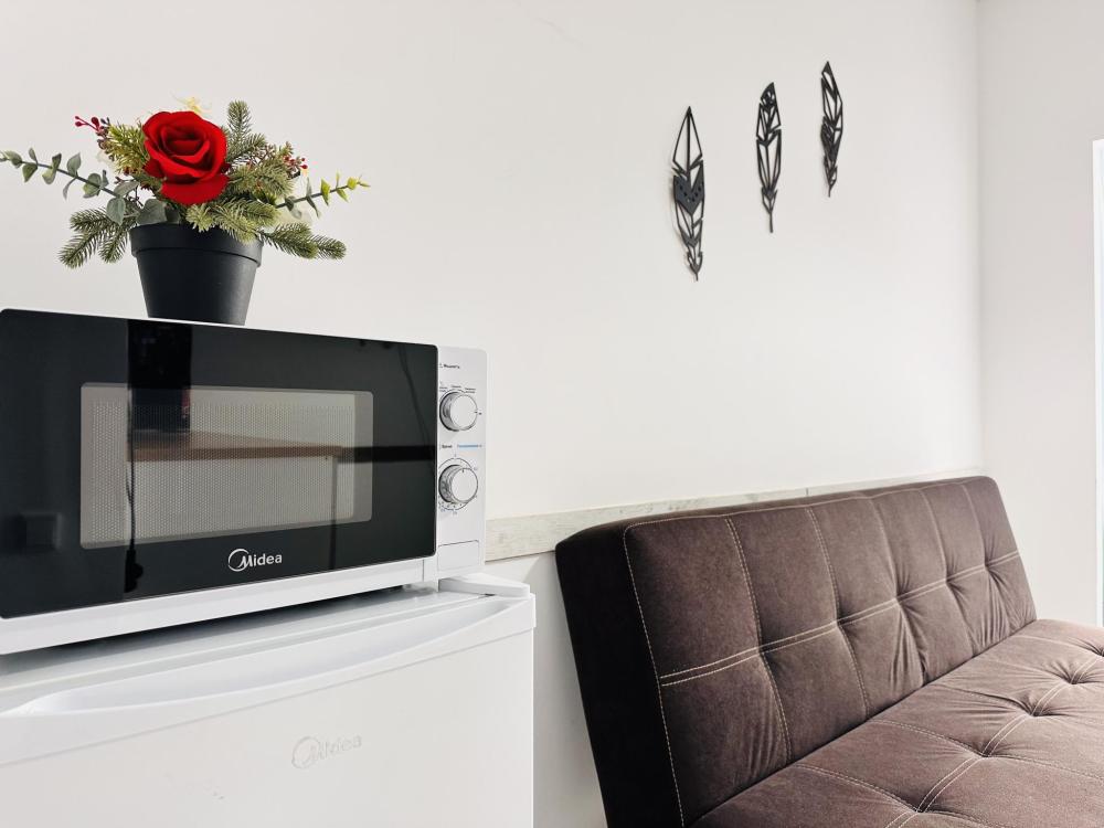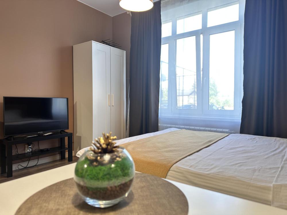 Апартаменты 25 м.кв. идеально подойдут для проживания 1-2 человек. Интерьеры выполнены в контрастной цветовой гамме, а лаконичный дизайн позволил вместить в малую площадь все необходимое для комфортной жизни. Представленные апартаменты прекрасно подходят для людей, требовательных к комфорту, но эффективно планирующих бюджеты на аренду. В качестве приветственного бонуса для гостей апартаментов предусмотрены бутилированная вода, чай, сахар. Для удаленной работы есть Бесплатный WI-FI Нет необходимости утяжелять свой багаж, так как в апартаментах имеются: средства гигиены, мыло, гель для душа, фен, тапочки, стиральный порошок кондиционер для белья.