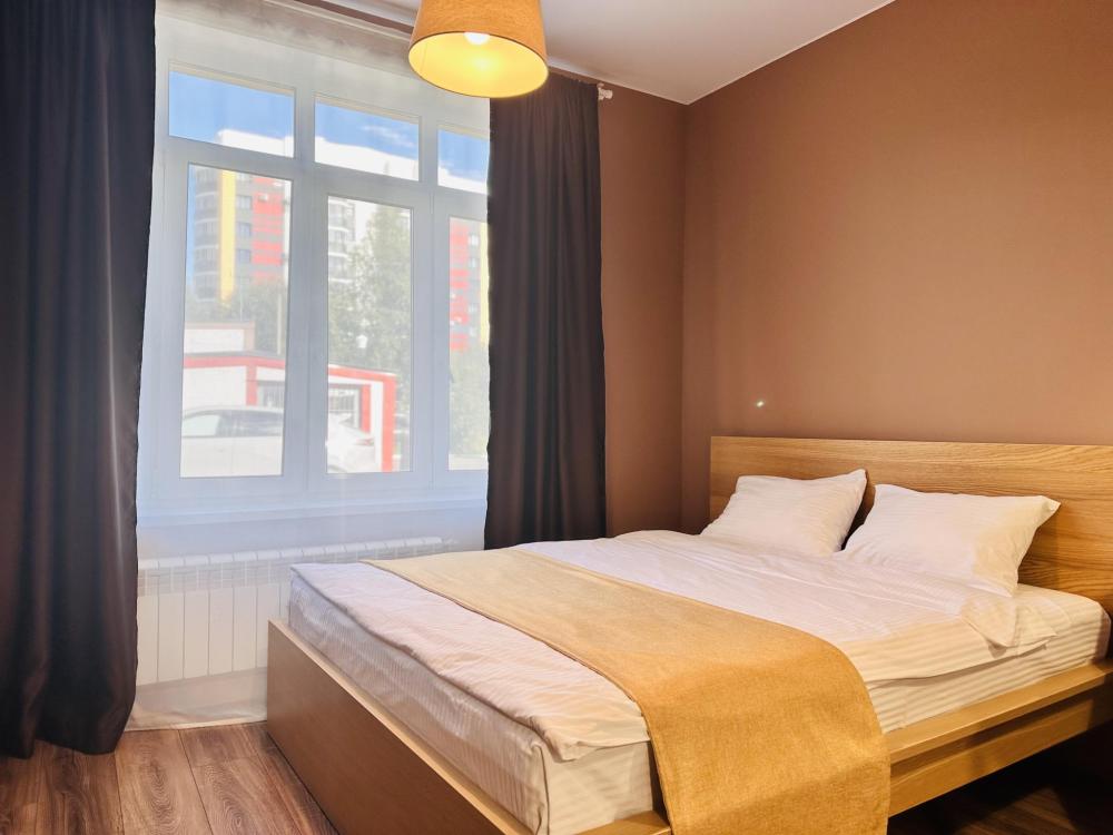 Апартаменты 25 м.кв. идеально подойдут для проживания 1-2 человек. Интерьеры выполнены в сдержанной бежевой цветовой гамме, а лаконичный дизайн позволил вместить в малую площадь все необходимое для комфортной жизни. Представленные апартаменты прекрасно подходят для людей, требовательных к комфорту, но эффективно планирующих бюджеты на аренду. В качестве приветственного бонуса для гостей апартаментов предусмотрены бутилированная вода, чай, сахар. Для удаленной работы есть Бесплатный WI-FI Нет необходимости утяжелять свой багаж, так как в апартаментах имеются: средства гигиены, мыло, гель для душа, фен, тапочки, стиральный порошок кондиционер для белья.