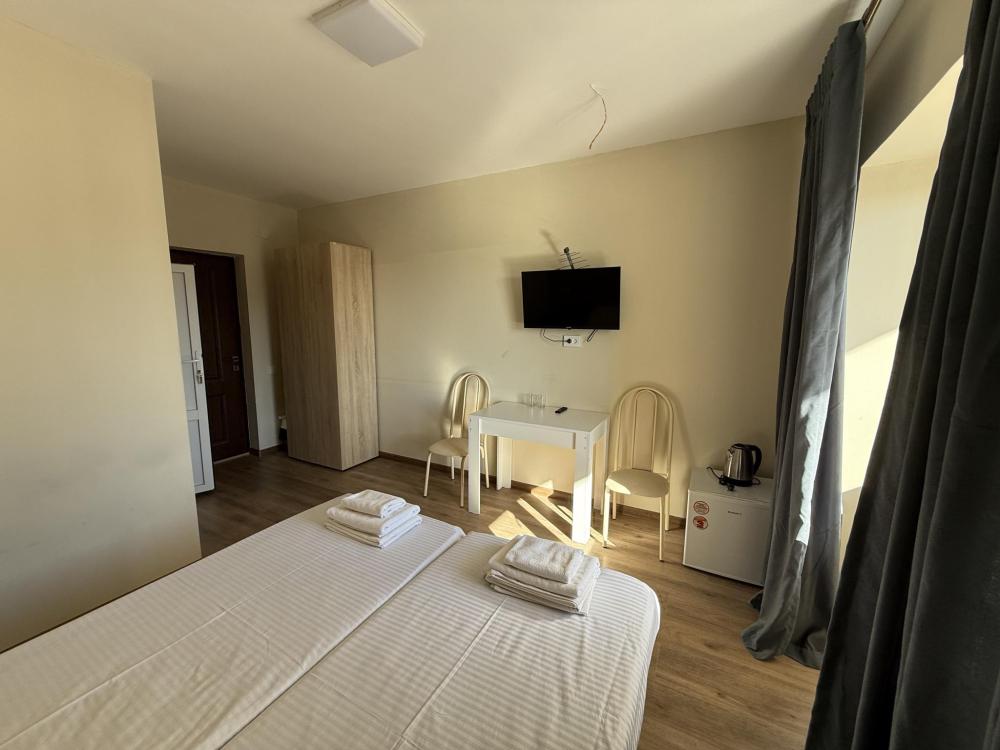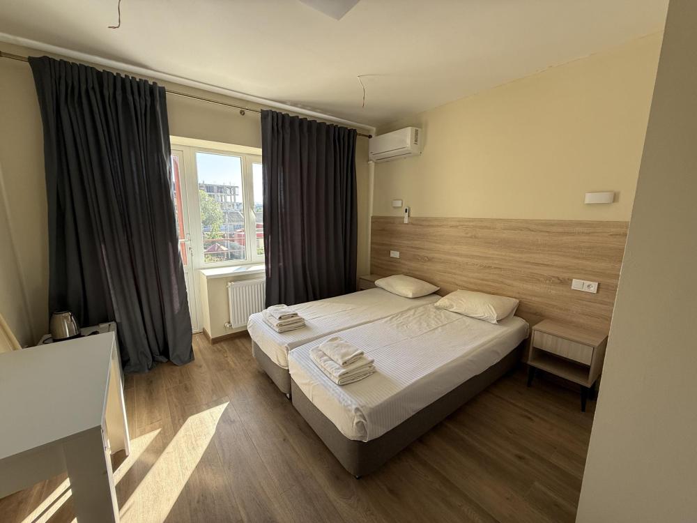 В номере 1 двуспальная крвоать и 2 односпальные, телевизор, wi-fi, душ, кондиционер, обслуживание номера.