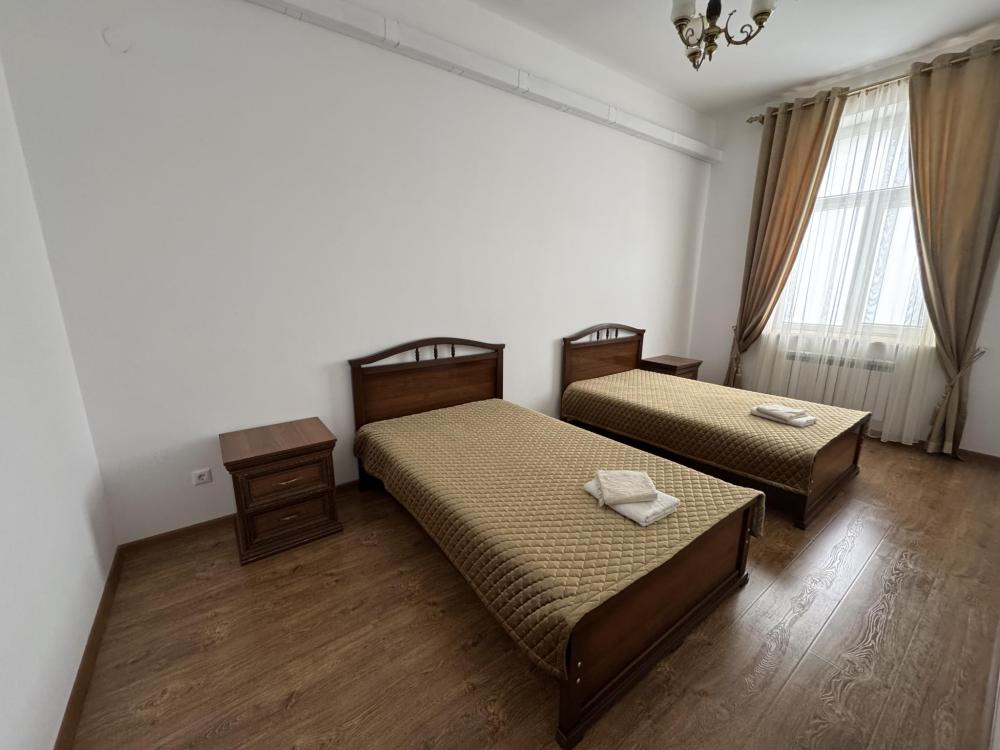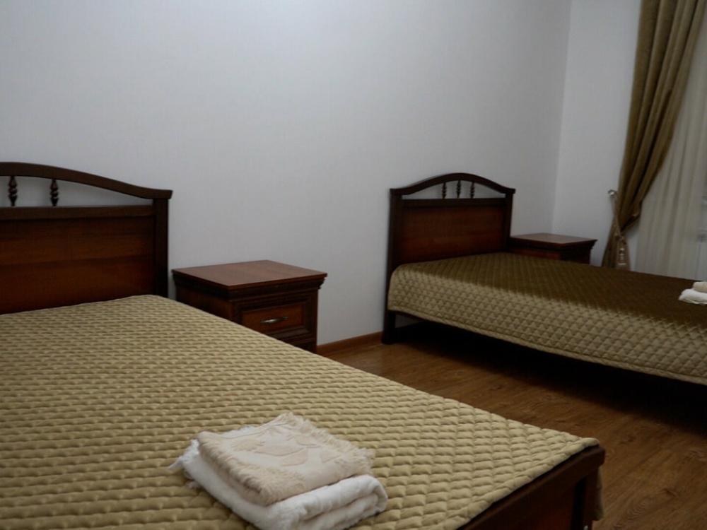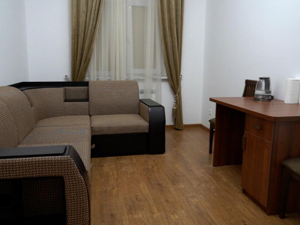 Уютный номер, оборудованный всем необходимым для комфортного проживания. В номере двуспальная или две односпальные кровати, диван, комплект мебели, телевизор, санузел с ванной комнатой.