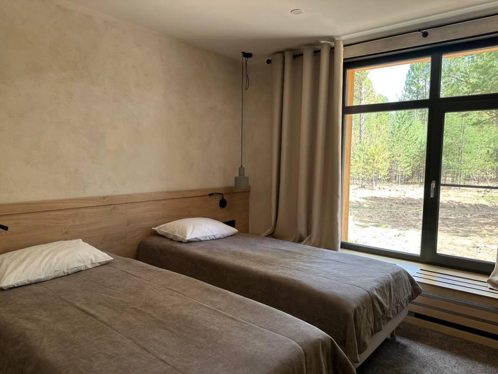 Благоустроенный корпус на 10 номеров в лесной тиши. Двухместные номера с двумя односпальными или двуспальной кроватями, разные варианты размещения. Подходит для круглогодичного отдыха. Ванная комната с душем, косметическими принадлежностями, комплектом полотенец, феном. Набор для чаепития: чайник, посуда, чай. Бесплатный Wi-Fi. Завтрак включен. Каждый номер со своим сан узлом. Один из 10 номеров - номер для маломобильных групп населения