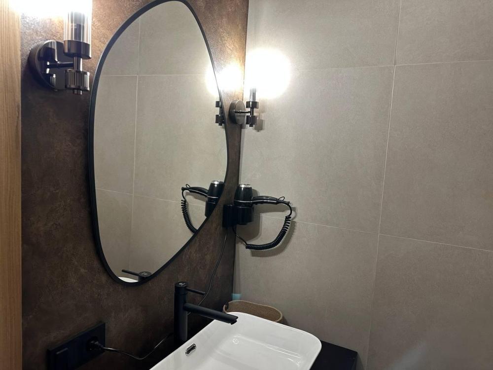 Домики в национальном стиле, с полным санузлом (душ, туалет, раковина, холодная и горячая вода, туалетные принадлежности: шампунь, гель для душа, жидкое мыло в диспенсере, зубной набор, фен). В номере одна большая двуспальная кровать и раскладной диван. В номере есть мини-холодильник, чайник с набором посуды и пакетики чая. Комплектация номеров соответствует звездной категории 3*