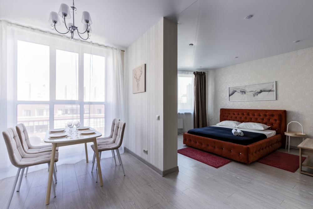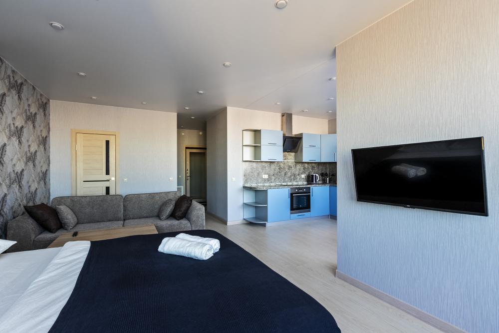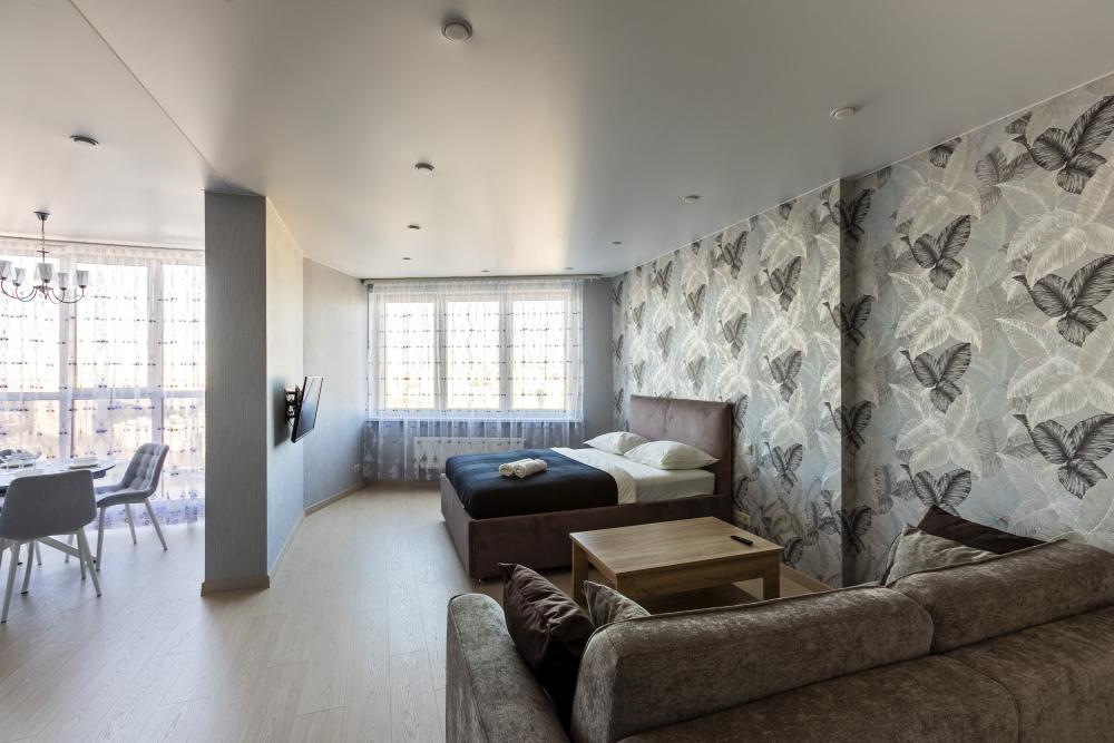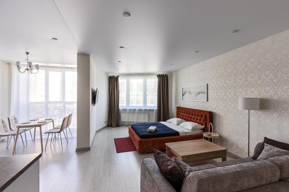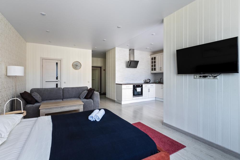 Квартира с 1 спальней и кухней гостиной с дизайнерским ремонтом в новом доме. Удобства: в квартире есть все необходимое для проживания, отдыха и работы: Wi-Fi, ТВ, стиральная машина, электрочайник, фен, утюг, вся необходимая посуда для приготовления и приема пищи, постельное белье, полотенца. Все входит в стоимость проживания.