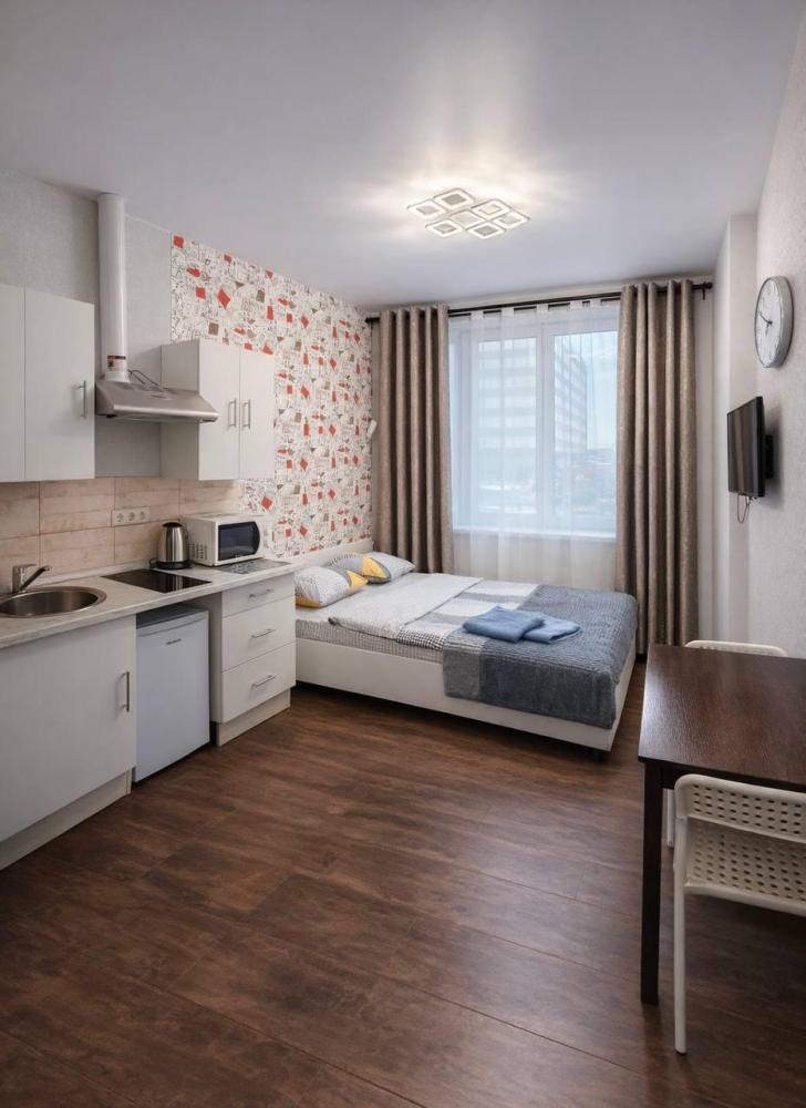 В апартаментах: двуспальная кровать, телевизор, кухонная зона, холодильник, электрический чайник, стиральная машина, электрическая плита, фен.