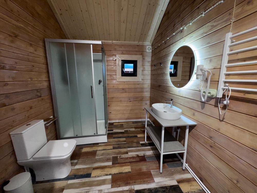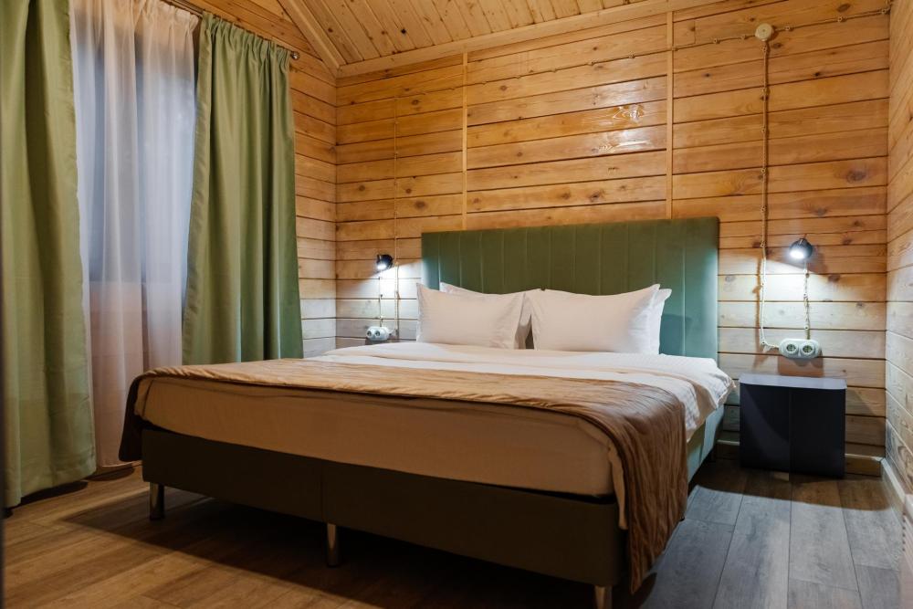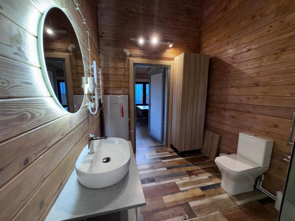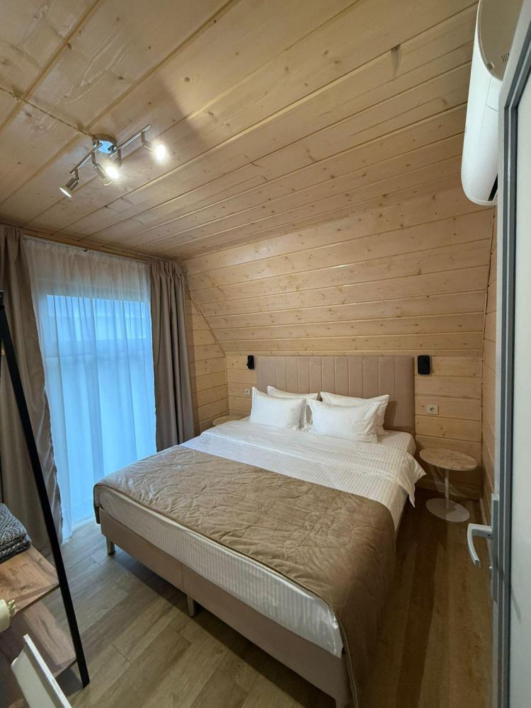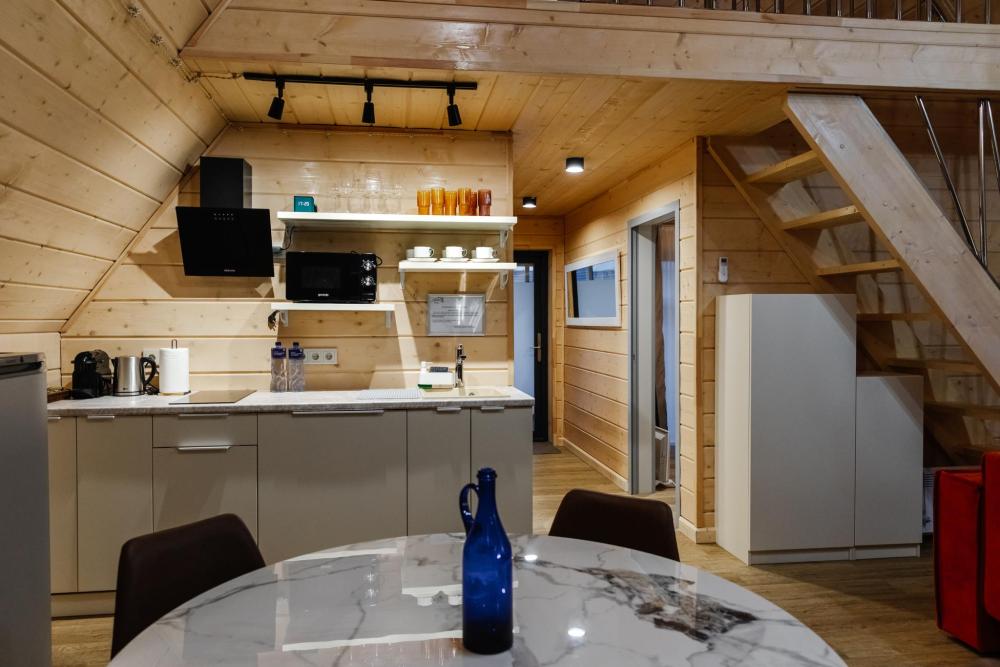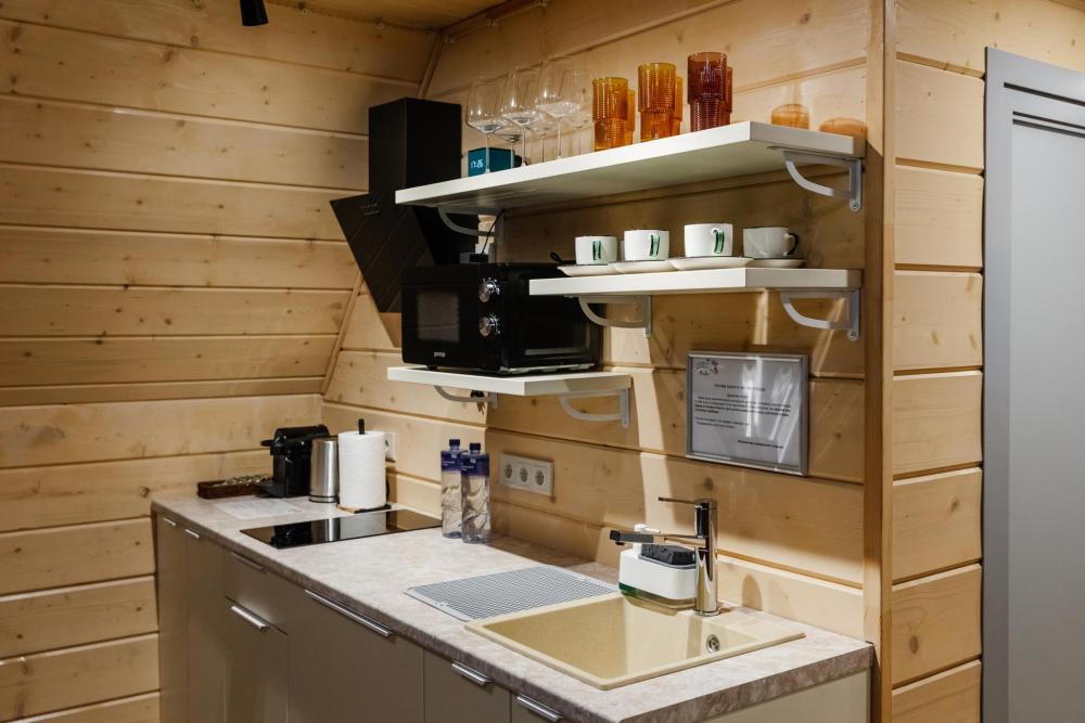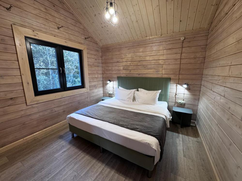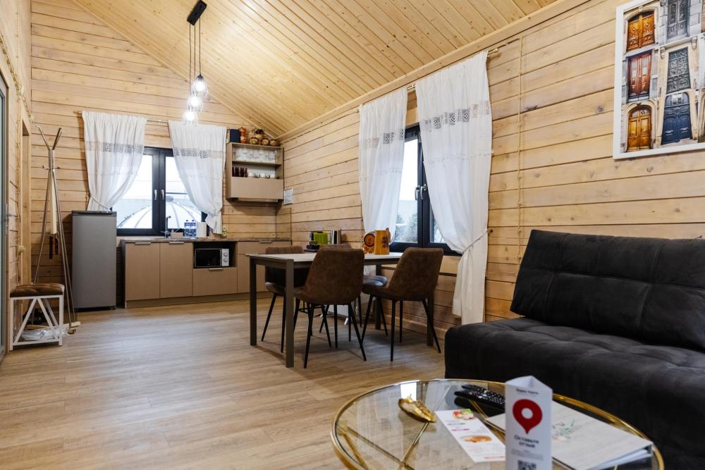 Домик из бруса- это убежище для души. Это место, где можно отключится от суеты, согреться у огня, вдохнуть полной грудью лесной воздух, не отказываясь от теплой постели, горячего душа и чашку утреннего кофе на собственной террасе. В домике есть все необходимое для комфортного отдыха: двуспальная кровать- 1, двухместный диван-кровать- 1, полноценный санузел, мини-кухня, капсульная кофемашина , чайный набор, мини- холодильник, качественное отопление для межсезонья, телевизор.