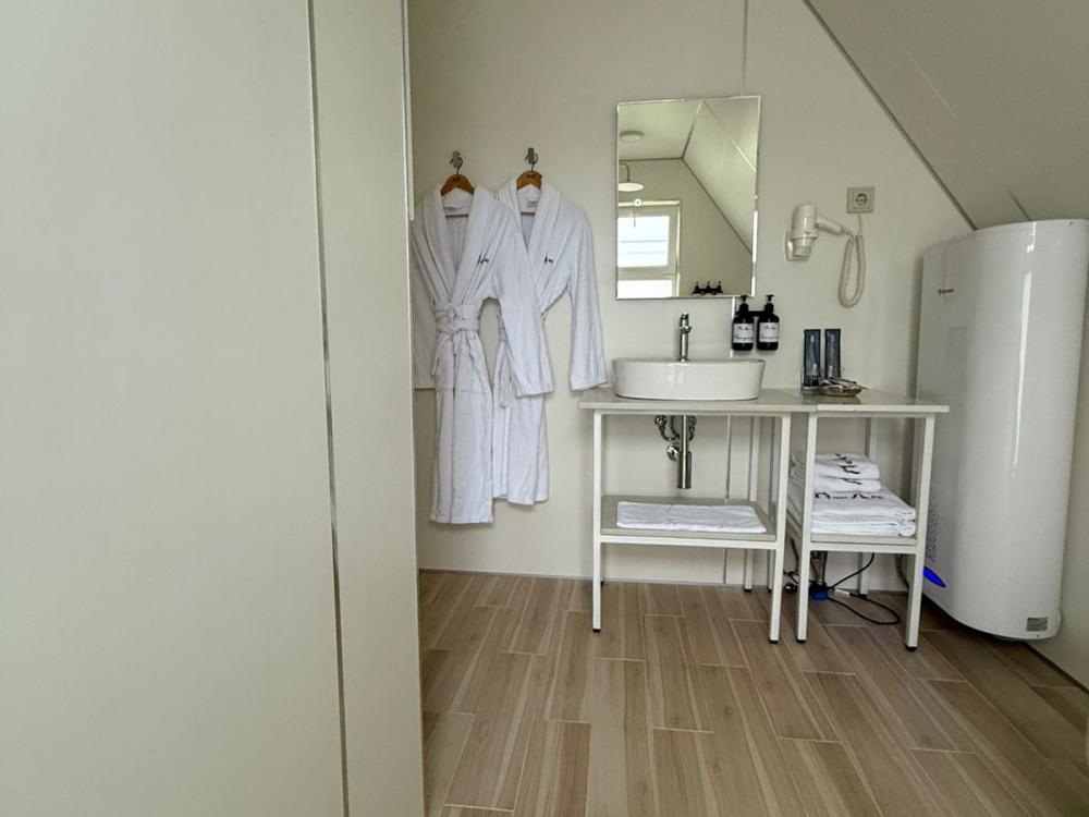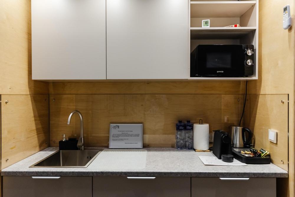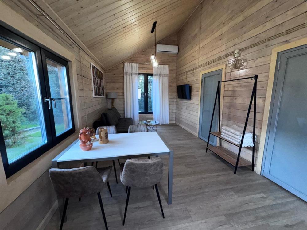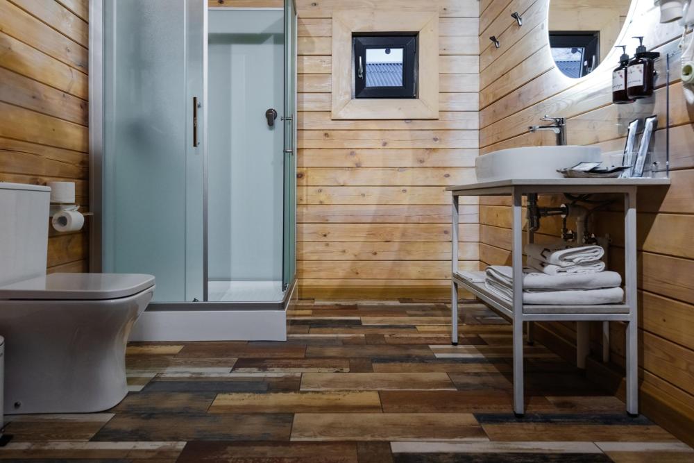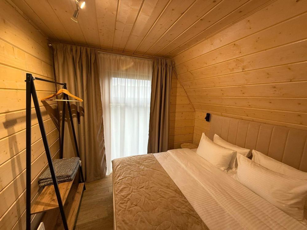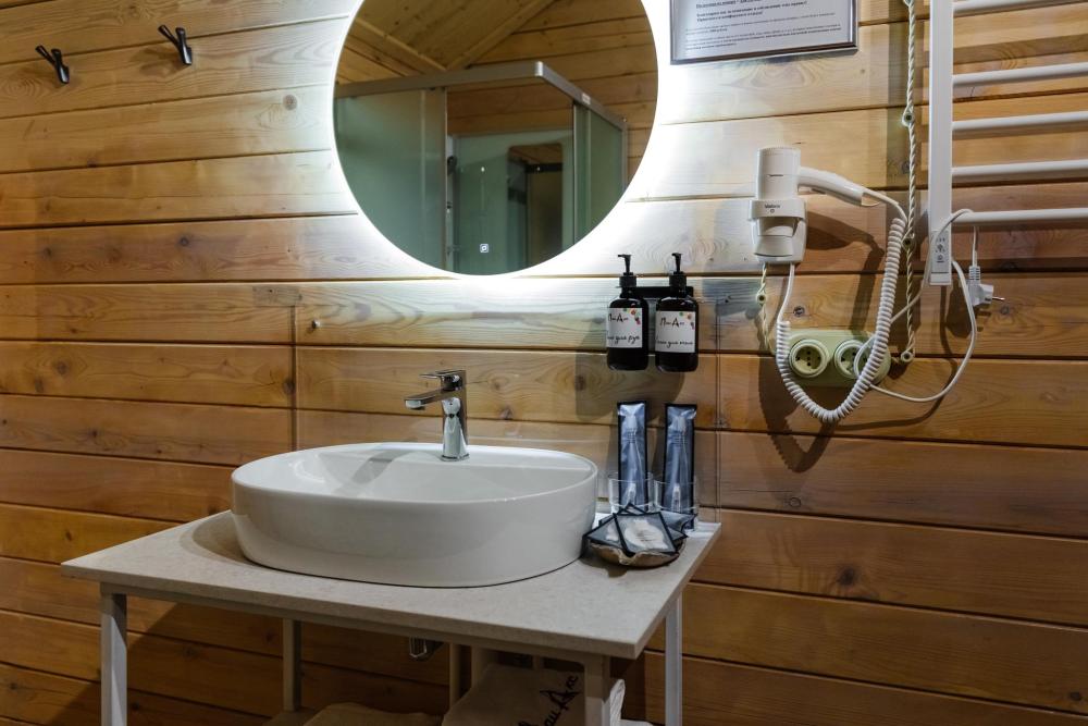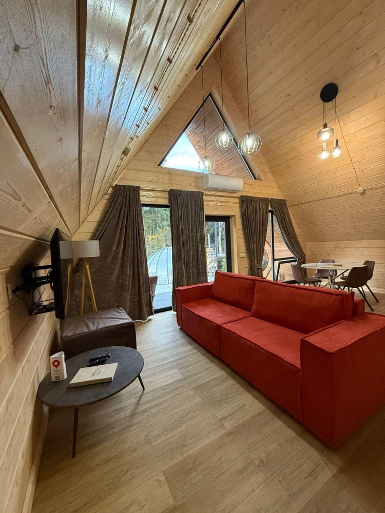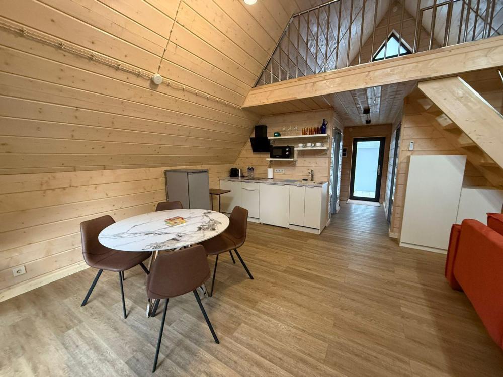 Домик из бруса- это убежище для души. Это место, где можно отключится от суеты, согреться у огня, вдохнуть полной грудью лесной воздух, не отказываясь от теплой постели, горячего душа и чашку утреннего кофе на собственной террасе. В домике есть все необходимое для комфортного отдыха: двуспальная кровать- 1, двухместный диван-кровать- 1, полноценный санузел, мини-кухня, капсульная кофемашина , чайный набор, мини- холодильник, качественное отопление для межсезонья, телевизор.