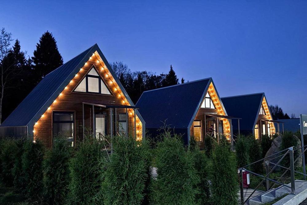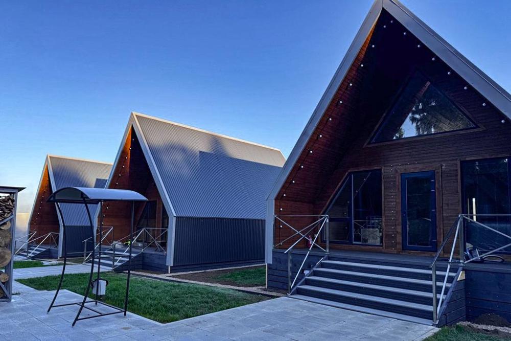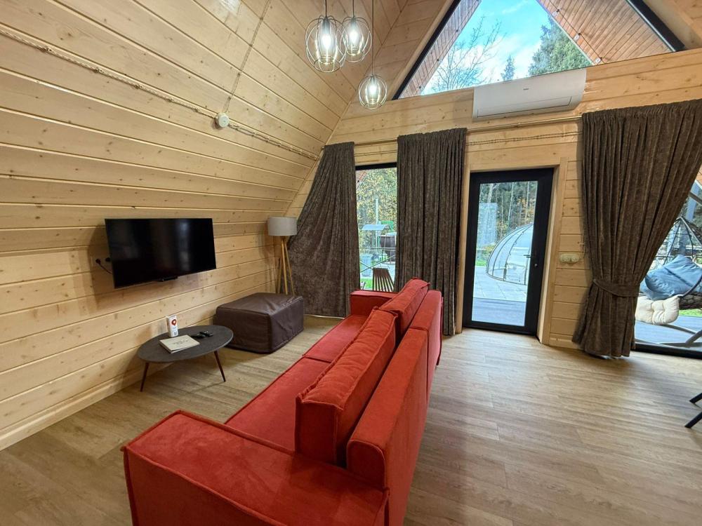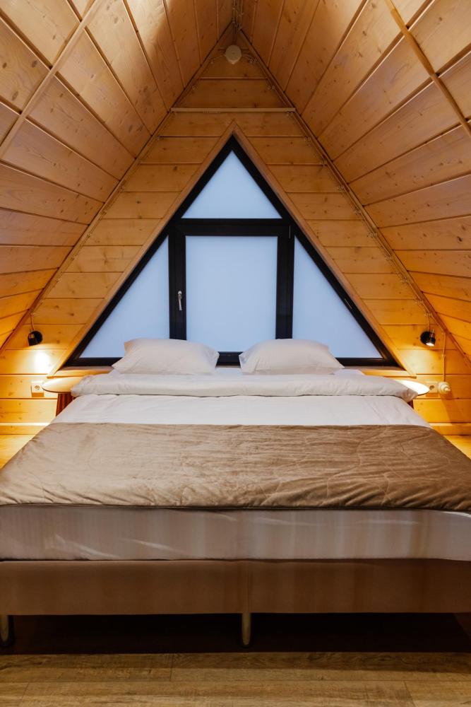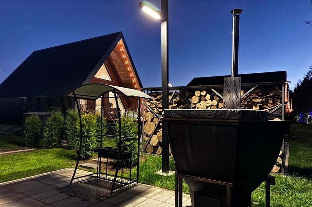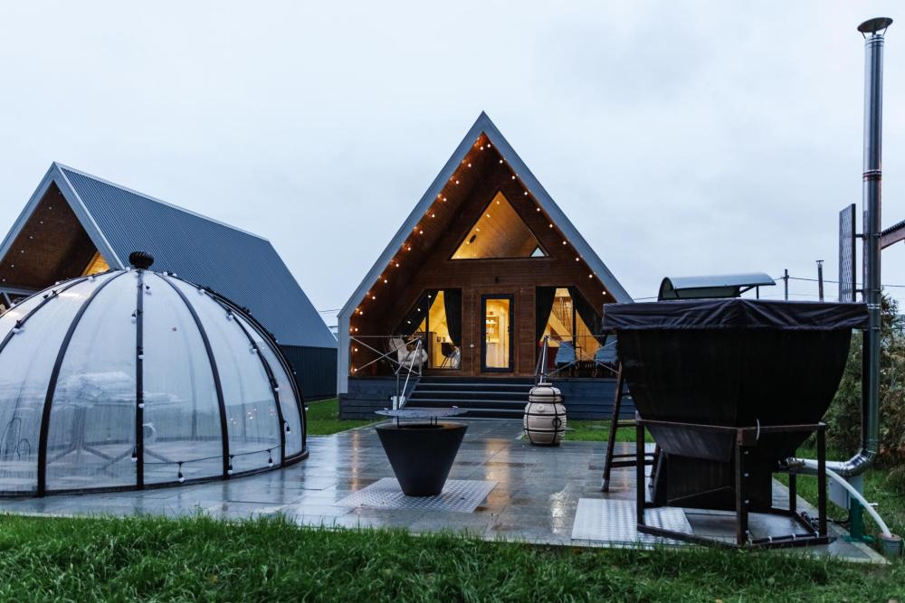 А-фрейм домик – ваш уединенный уголок в лесу с панорамными окнами. Стильный просторный домик с панорамными окнами на лес. Вас ждёт оборудованная кухня, комфортная мебель и просторная терраса с подвесным креслом. У каждого домика прозрачная купольная Беседка для отдыха в любую погоду. Для приготовления вкуснейших блюд на огне мы оборудовали мангальную зону - мангал, гриль-очаг, дрова. После прогулок по лесу наслаждайтесь Сибирским банным Чаном под звездным небом. Идеальное сочетание комфорта и единения с природой. .