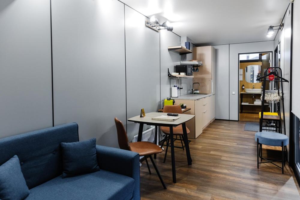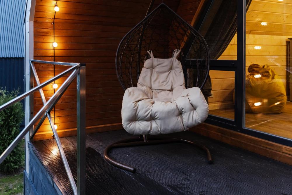 Модульный домик с качелью на веранде – уютное гнездышко среди природы Представьте себе идеальный баланс между современным комфортом и романтикой загородного отдыха. Наш модульный домик – это просторное, светлое пространство, где каждая деталь создана для вашего удовольствия. Днём здесь царит мягкий солнечный свет, льющийся через большие окна, а вечером – уютное тепло деревянных стен и атмосфера, располагающая к отдыху. Но главное сокровище этого домика – уютные качели под воздушным балдахином, где так приятно читать книгу, пить утренний кофе или просто мечтать, наблюдая за облаками. Здесь время замедляется, а природа становится ближе. После прогулок по лесу или активного дня можно расслабиться в тени балдахина, слушая шелест листвы и наслаждаясь покоем. Этот домик создан для тех, кто ценит стиль, комфорт и моменты тихого счастья – в гармонии с собой и окружающим миром. Ваш идеальный побег от городской суеты начинается здесь.