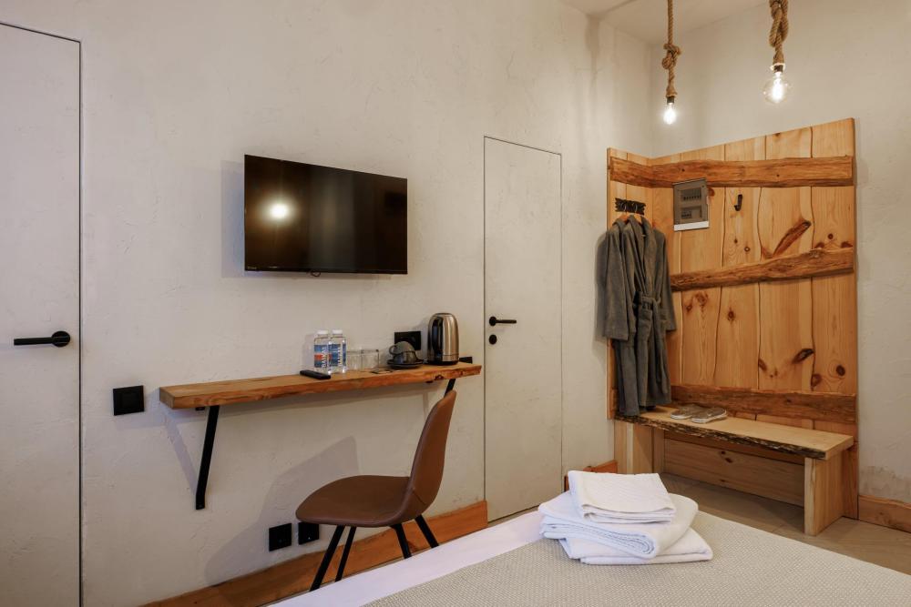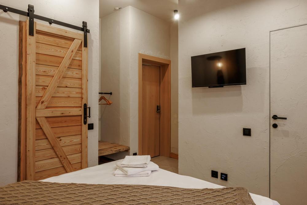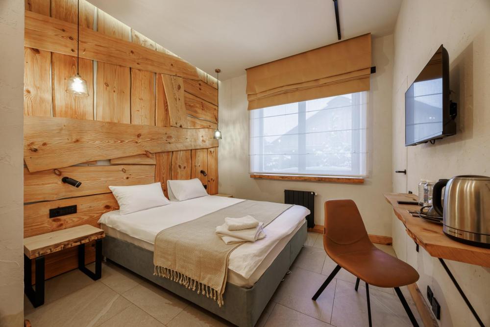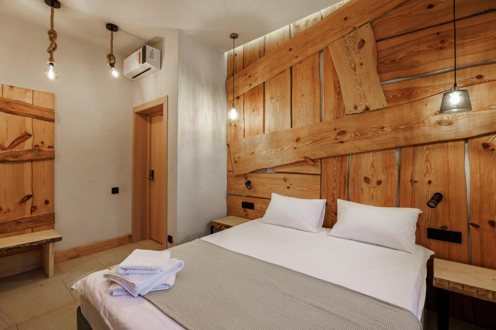 Комфортный номер "Сосновый", площадью 17 м2. Рассчитан на размещение двоих гостей. Авторский номер с отделкой из натуральной сосны. Удобная кровать с качественным постельным бельём и комфортным матрасом. Кондиционер, телевизор, тёплый пол, вентиляция. Розетки у кровати, качественное освещение для работы и отдыха.