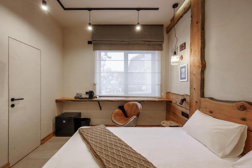 Комфортный номер "Келовый", площадью 16м2. Авторский номер с отделкой из натуральной сосны. Удобная кровать с качественным постельным бельём и комфортным матрасом. Кондиционер, телевизор, тёплый пол, вентиляция. Розетки у кровати, качественное освещение для работы и отдыха.