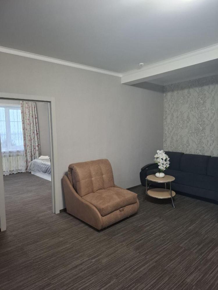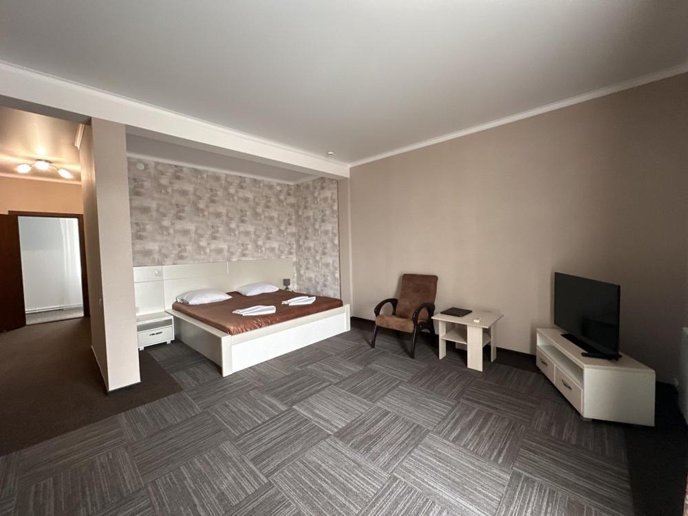 Двухметный номер, 65 кв.м, две комнаты, одна двуспальная кровать и один раскладной двуспальный диван.