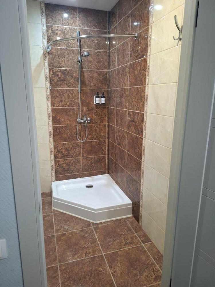 Одноэтажное строение площадью более 80 кв.м. с видом на Волгу. Кухня, гостиная с раскладными диванами, санузел с душевой кабиной. Мангальная зона. Кухня со столом на 6 персон, с полным набором посуды. В распоряжении гостей электроплита, электрочайник, мойка. Зона отдыха с двухспальным раскладными диванами. Две спальни «твин» и «дабл».