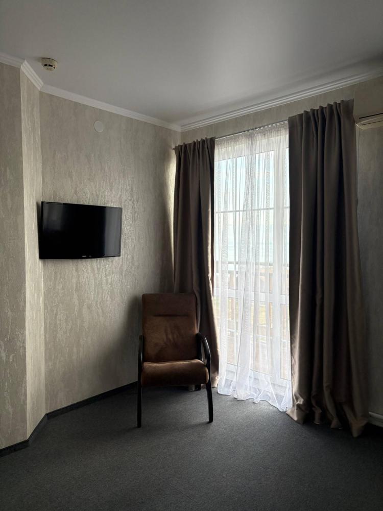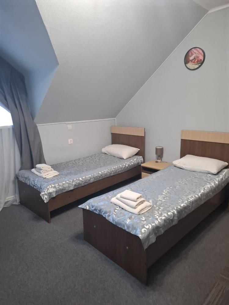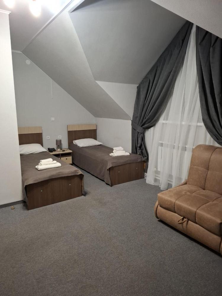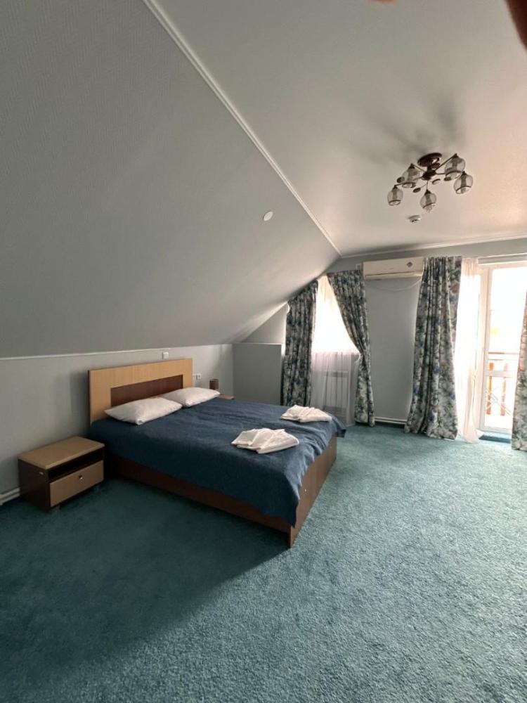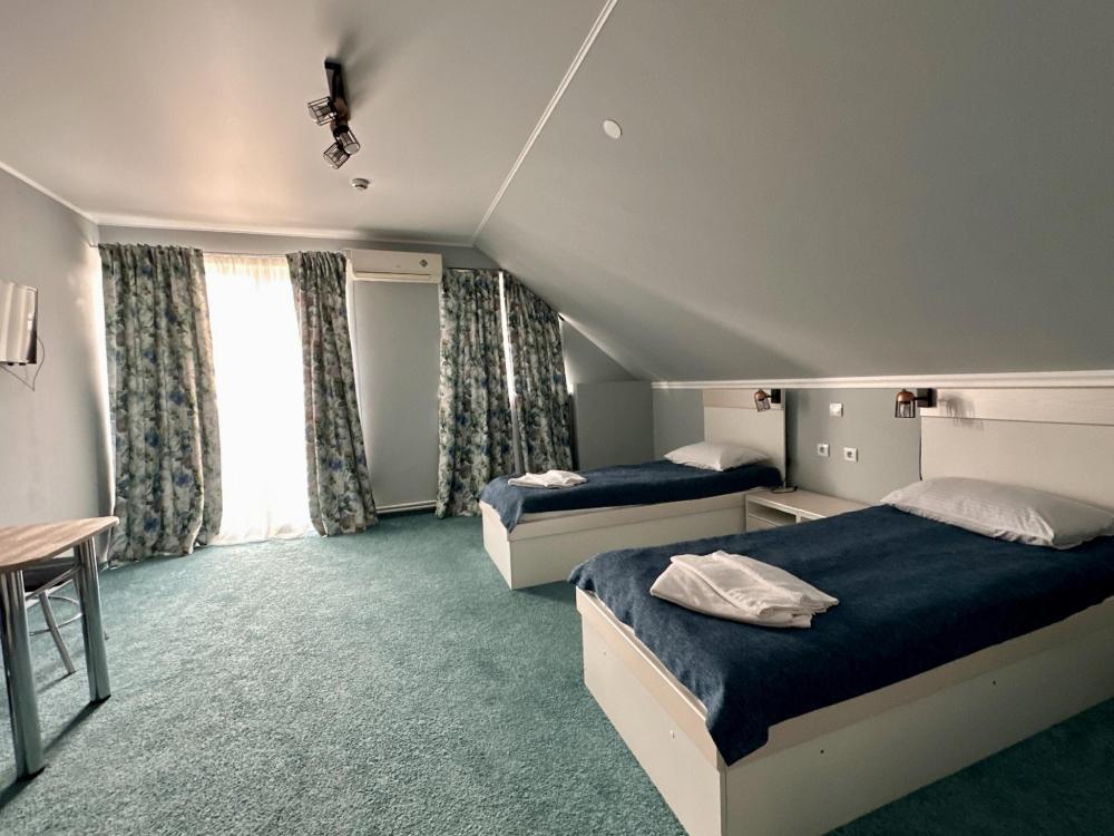 Двухместные номера на втором этаже 40 кв.м, одна двухспальная кровать, дополнительное место кресло кровать,без балкона, находится во втором корпусе.