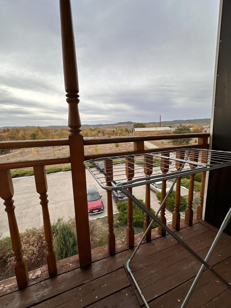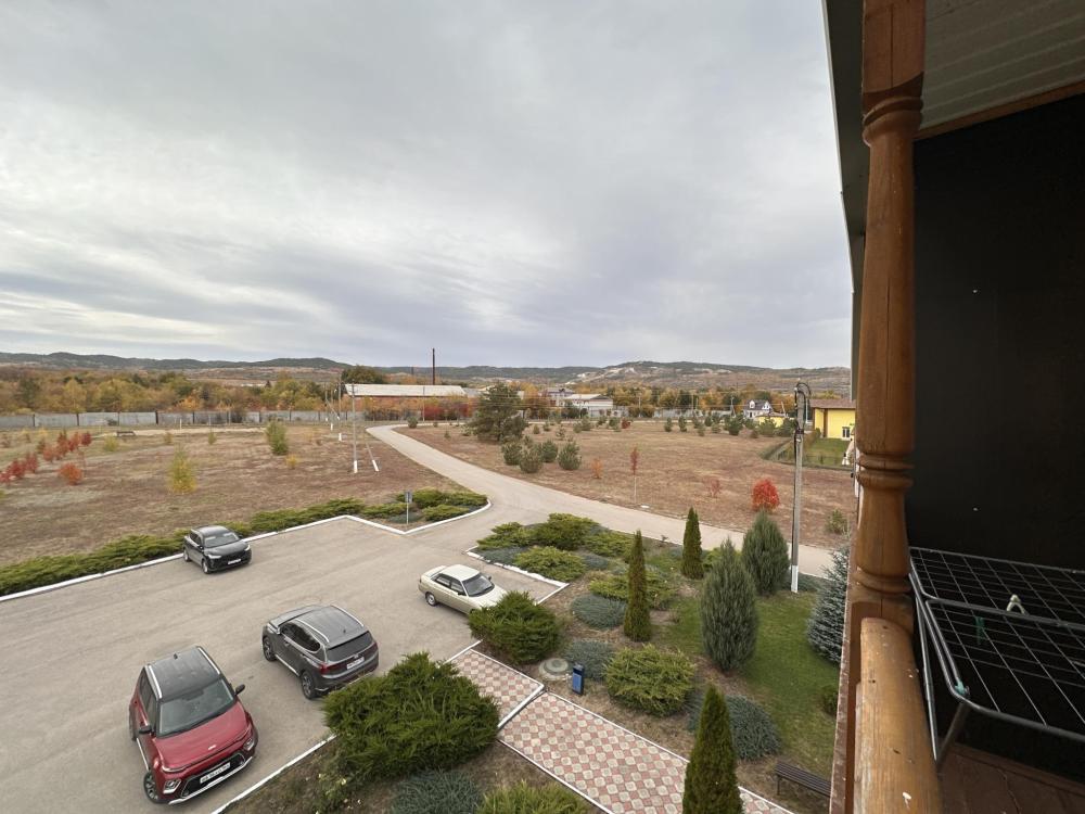 Двухместный номер на 3 этаже с балконом 30 кв. м. с двумя кроватями с видом на горы и парковку.