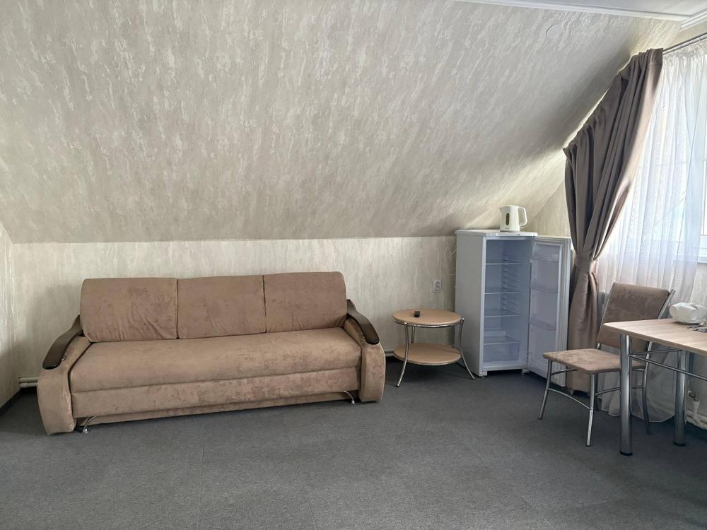 Двухместный мансардный номер на 3 этаже, 60кв. м. с балконом и с видом на сад и Волгу, одна двухспальная кровать, один раскладной диван.