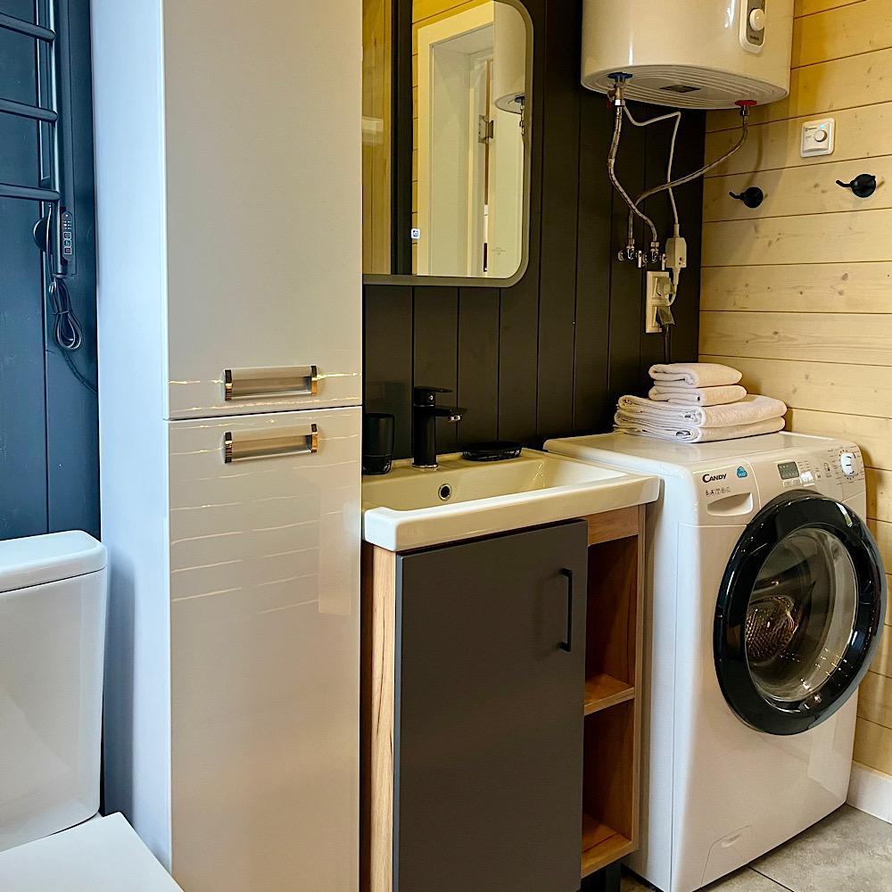 В коттедже: две спальни, кабинет-детская, кухня-гостиная и санузел, сауна. Так же имеется крытая терраса для комфортного отдыха в плохую погоду️ Мангальная зона на улице.